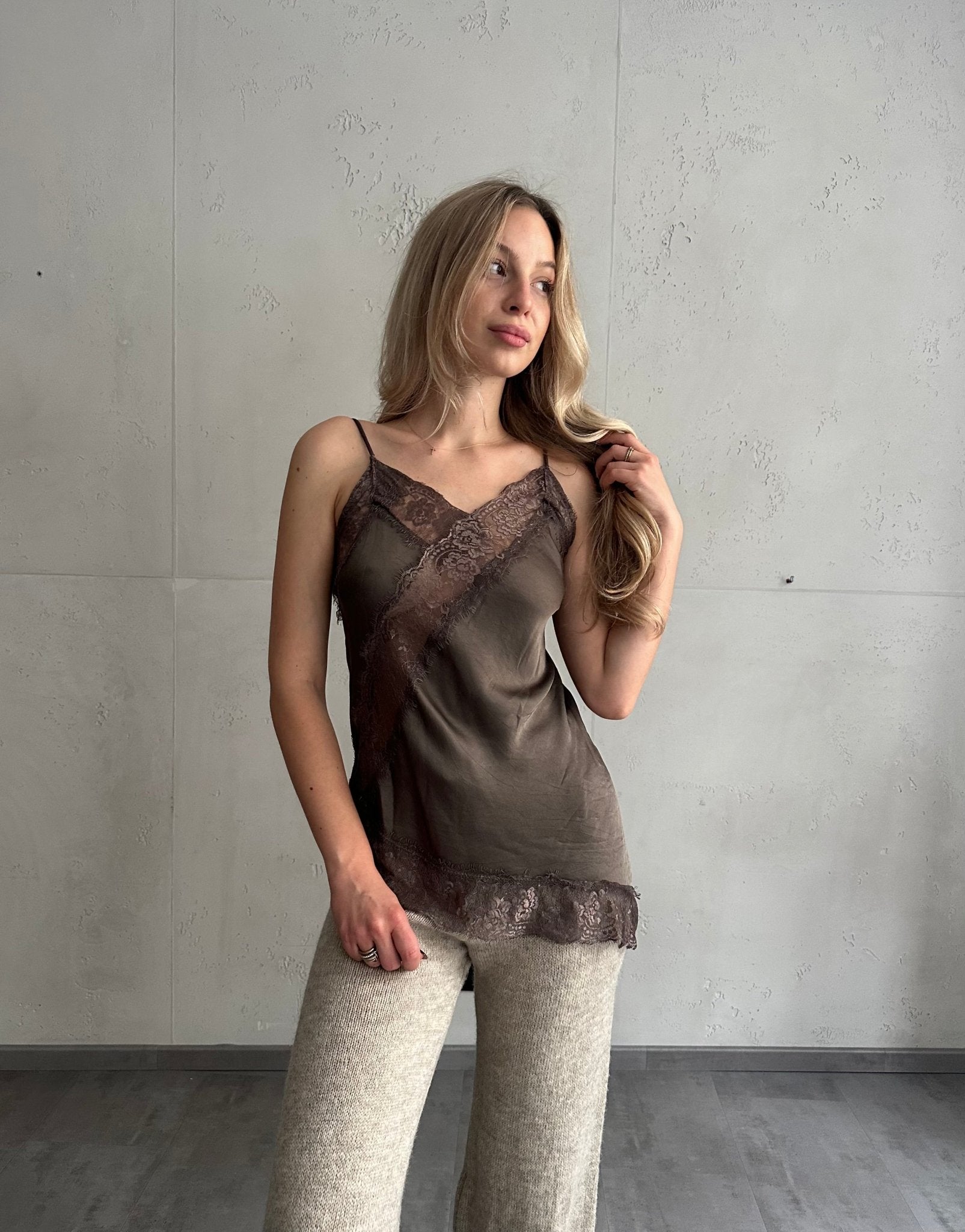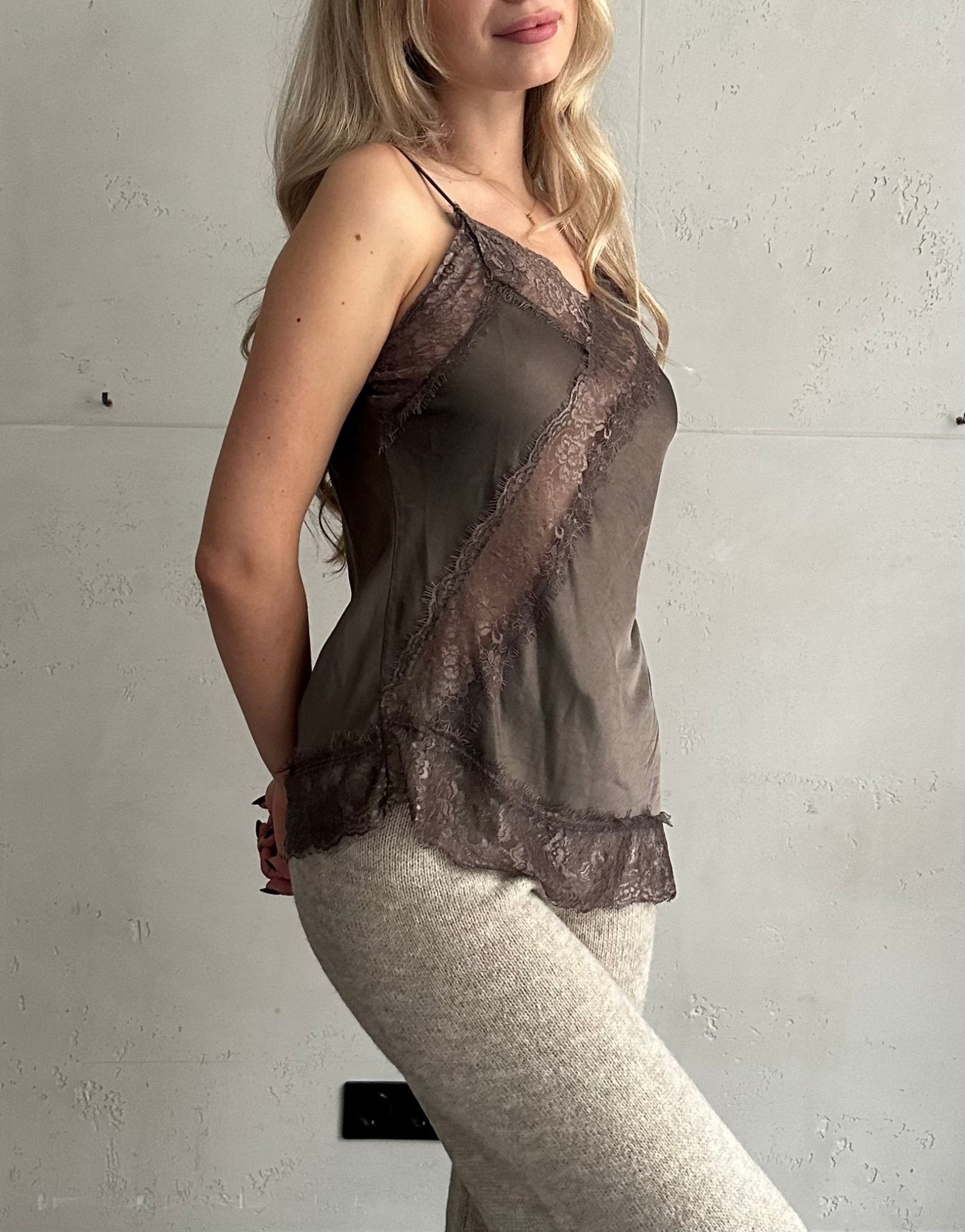 Asymmetrisches Spitzentop aus Seide & Viskose