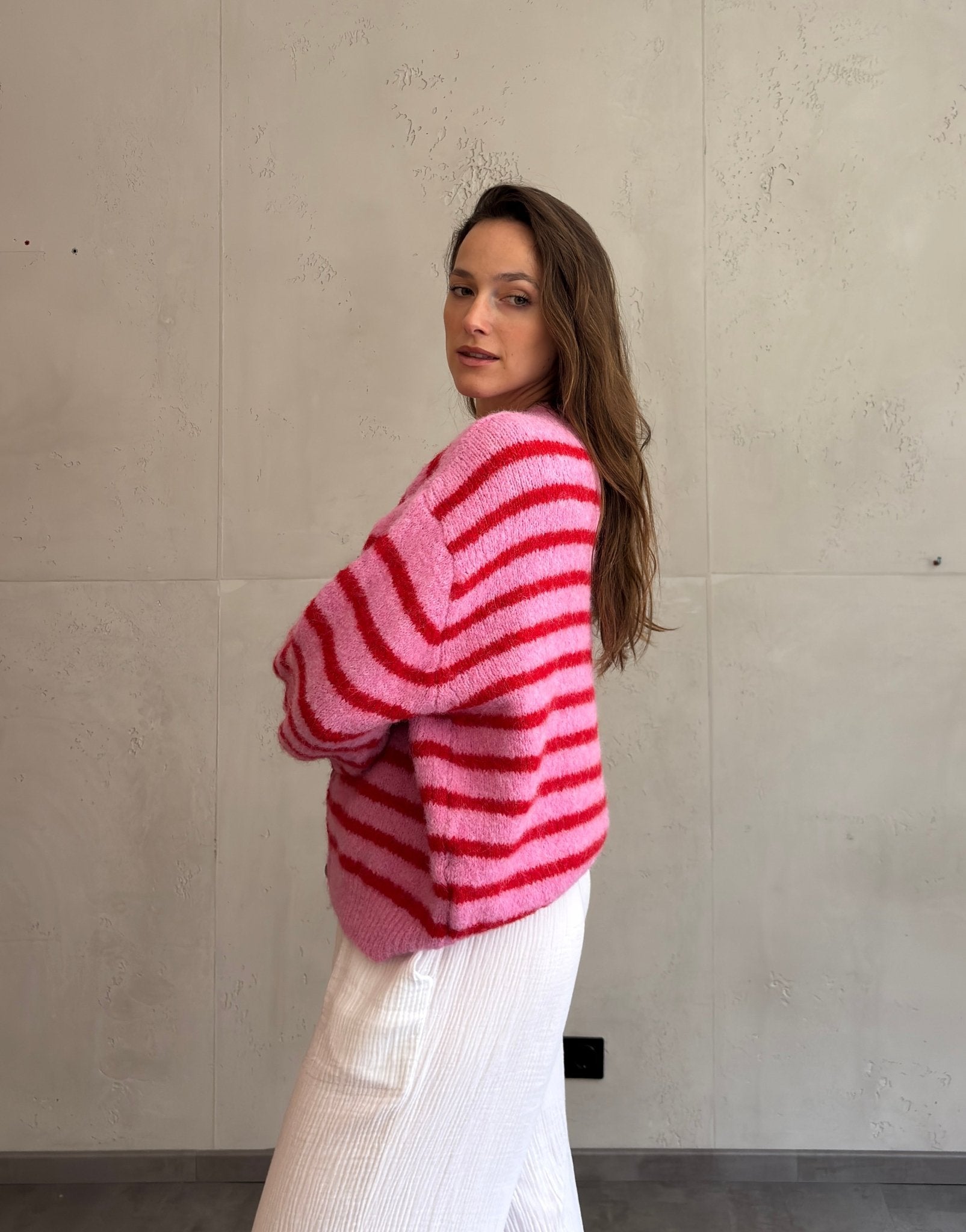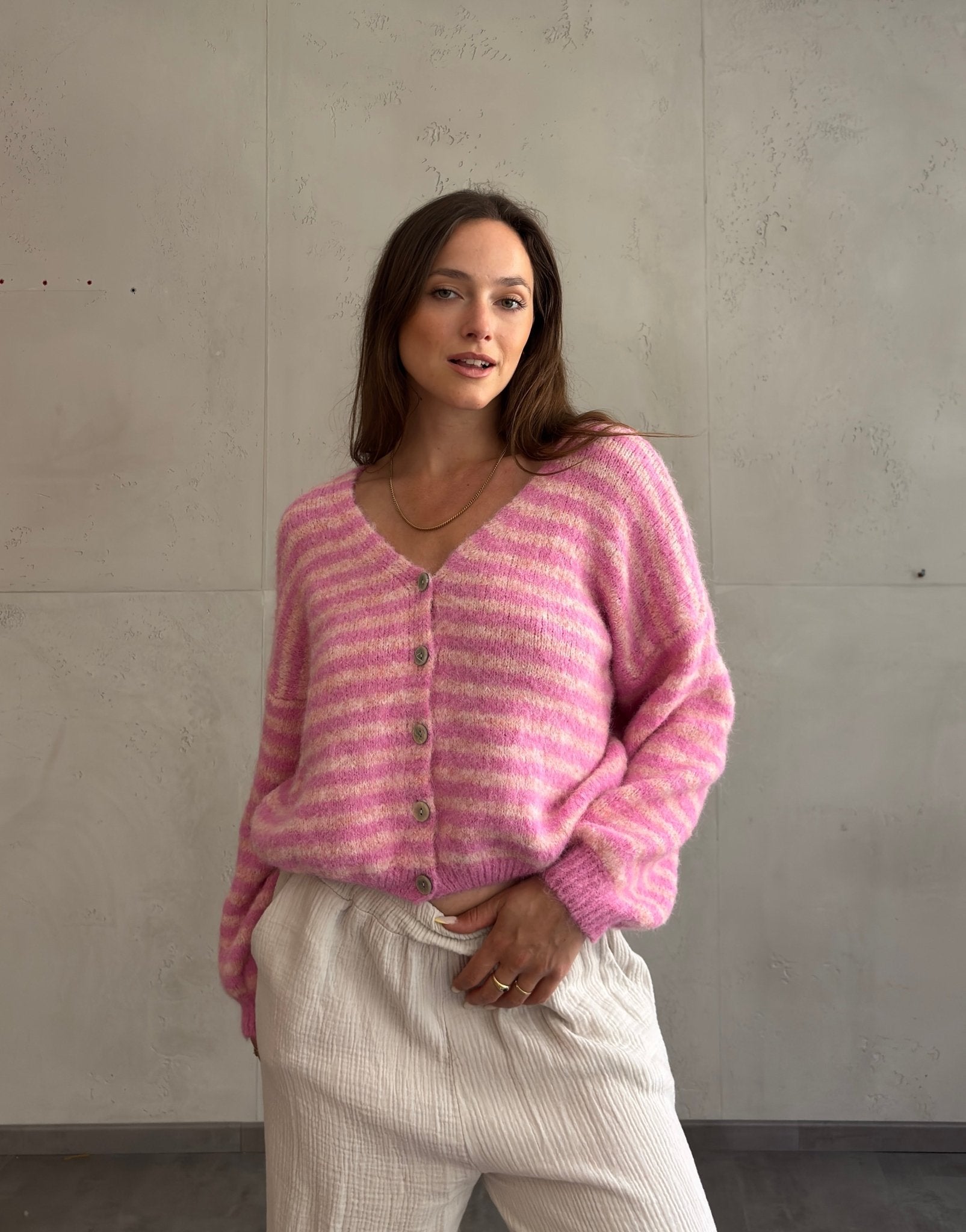 1 BewertungGestreifte Strickjacke mit V-Ausschnitt