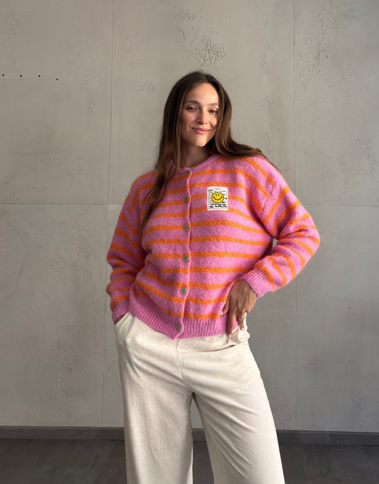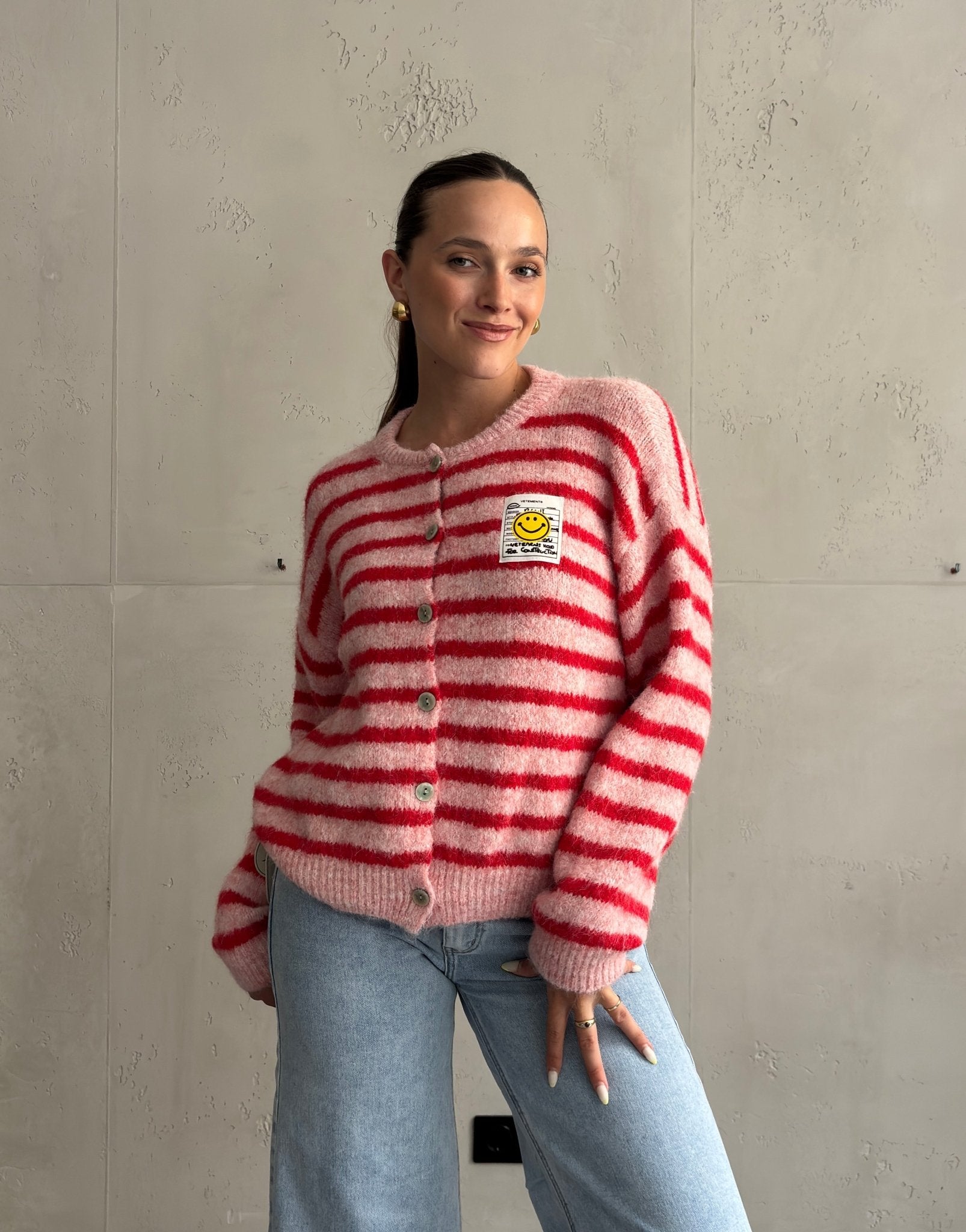 1 BewertungSmiley Patch Strickjacke gestreift