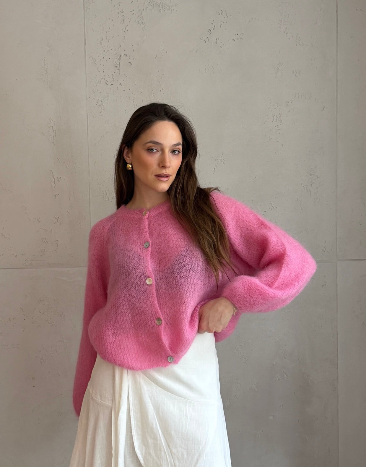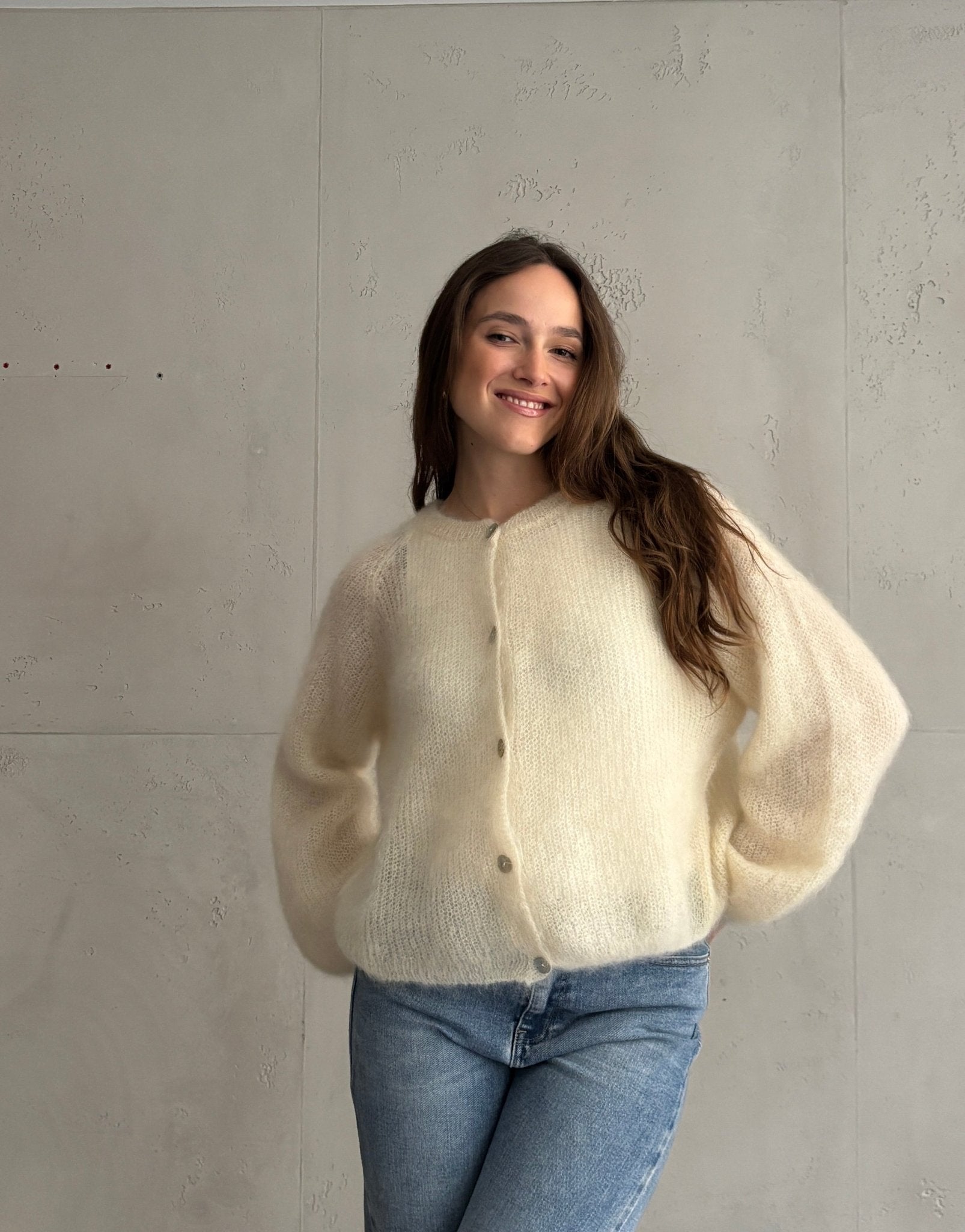 Kurze Mohair Strickjacke mit V-Ausschhnitt
