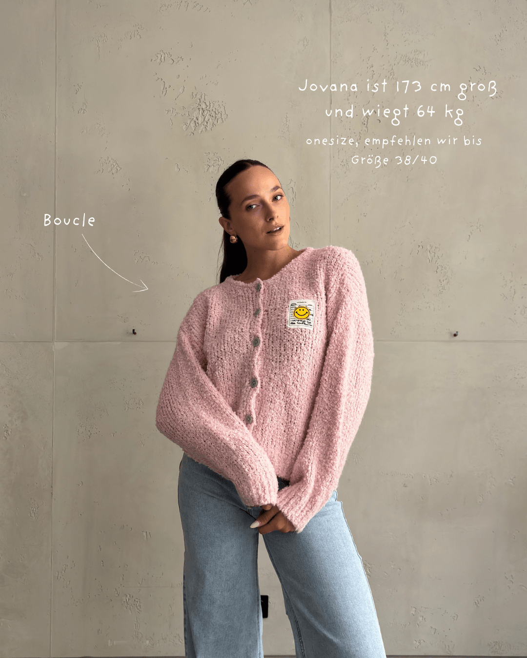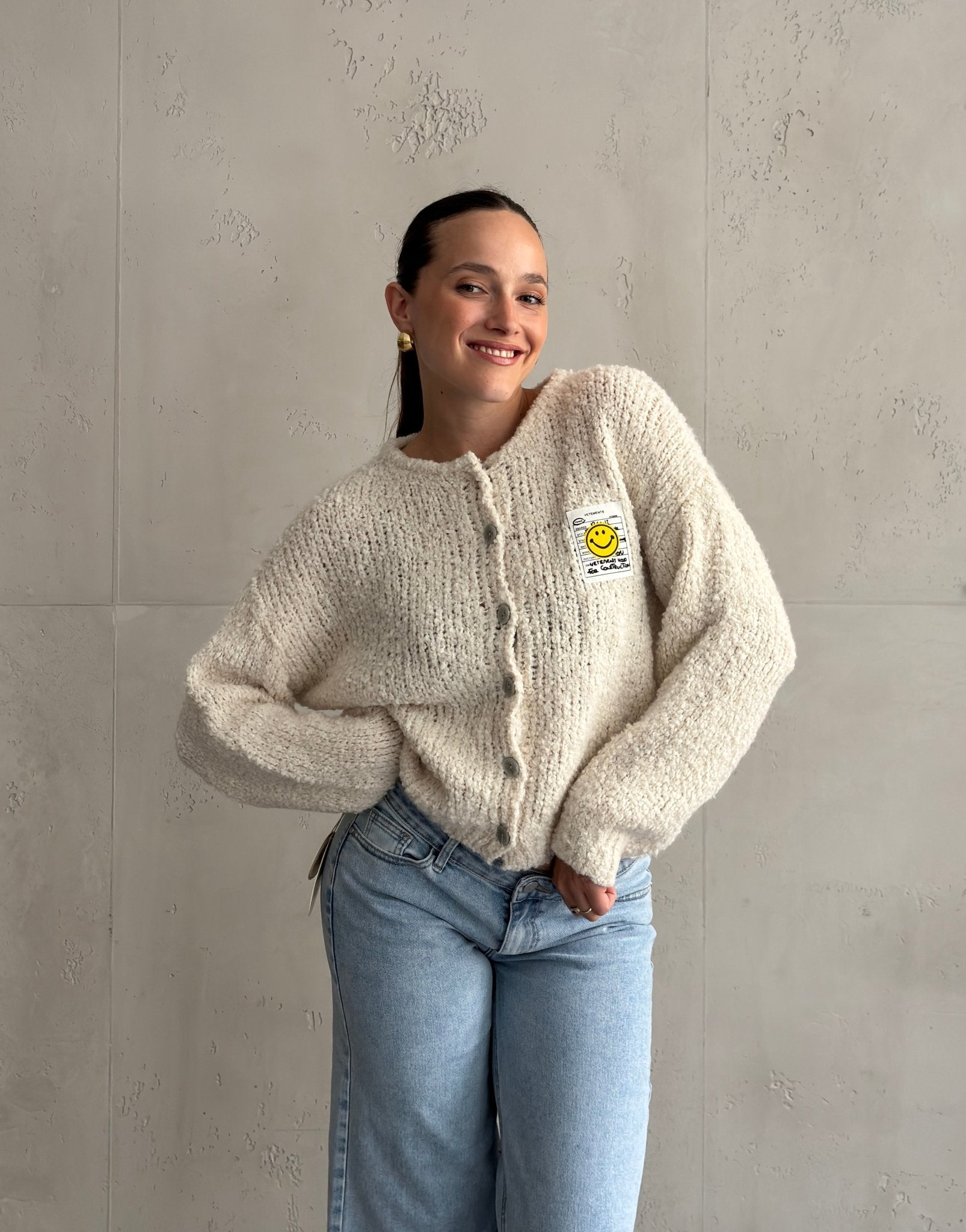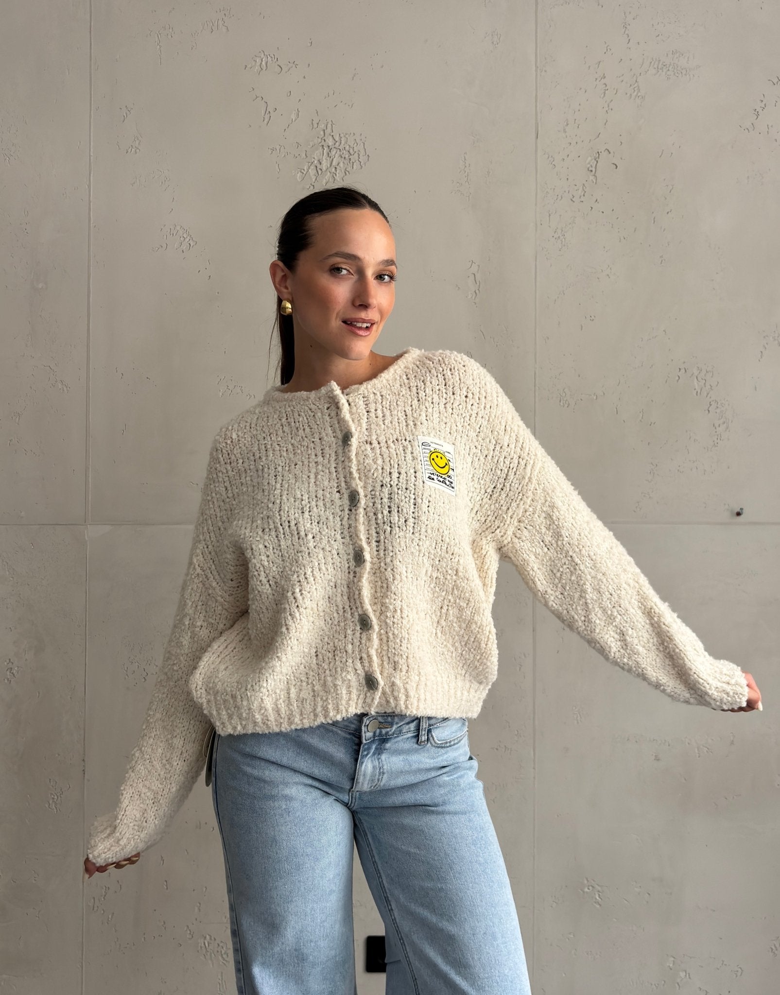 Bouclé Strickjacke mit Smiley Patch