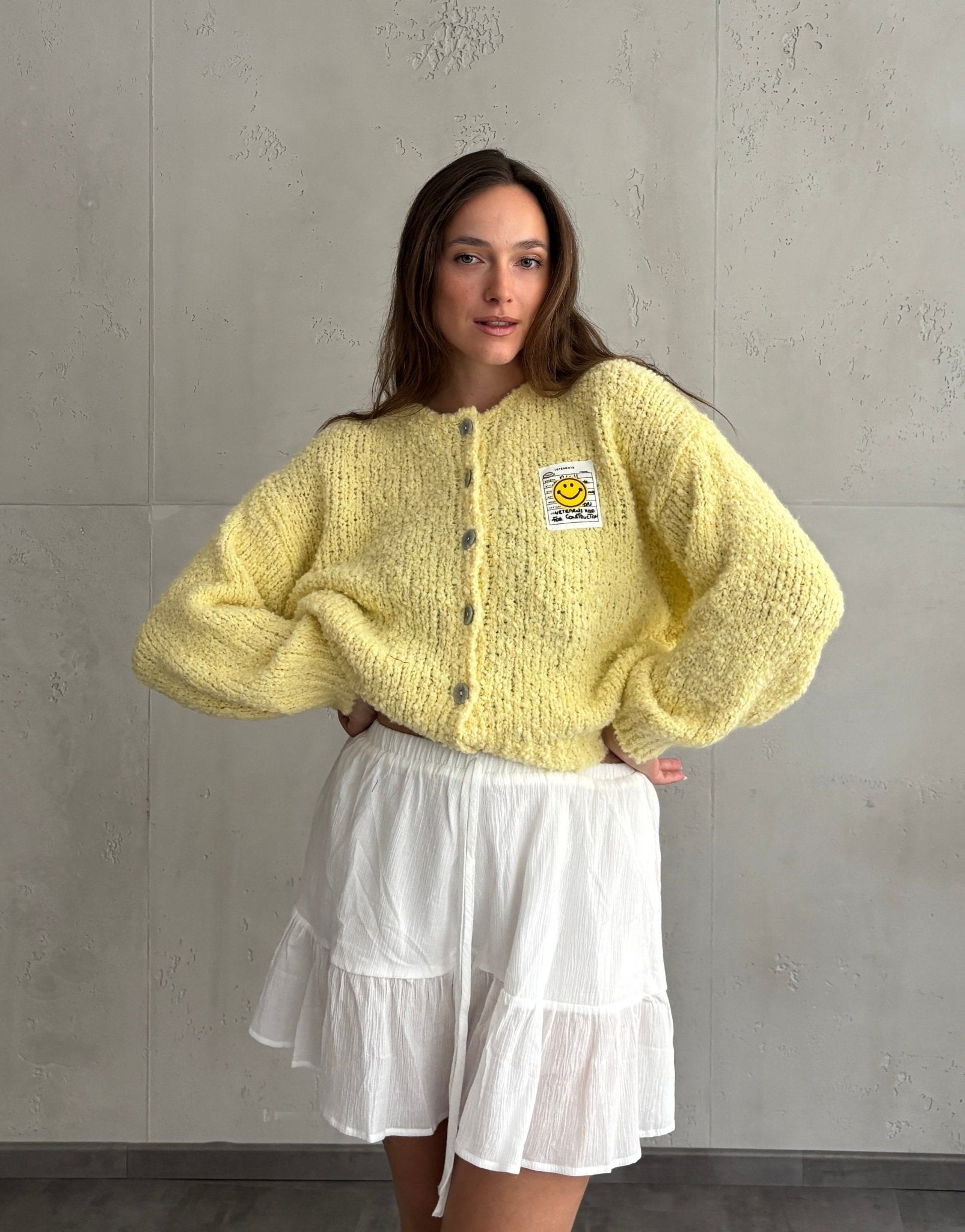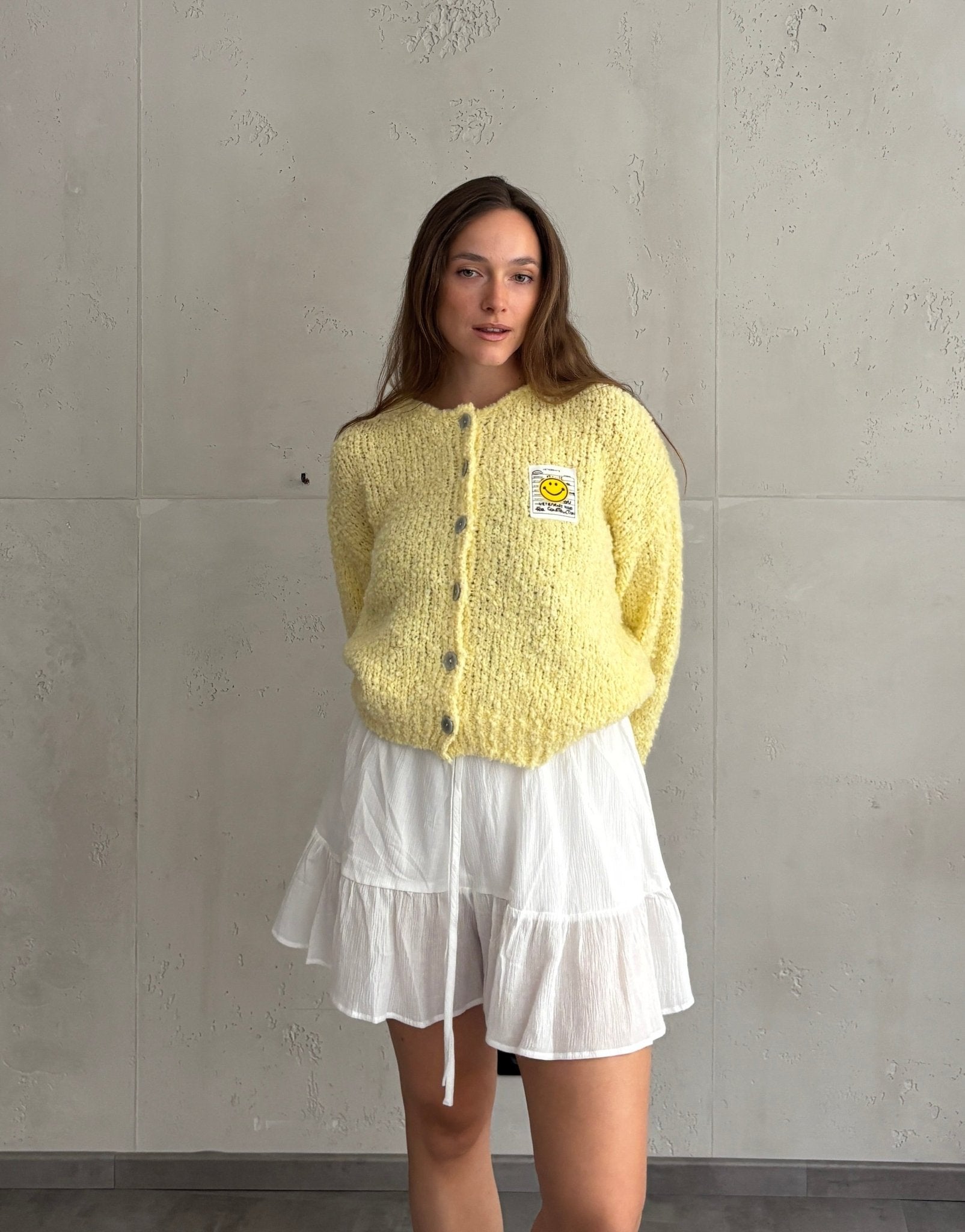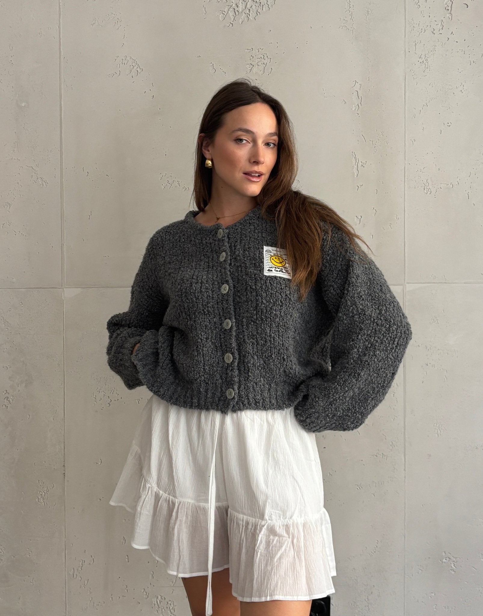 Bouclé Strickjacke mit Smiley Patch