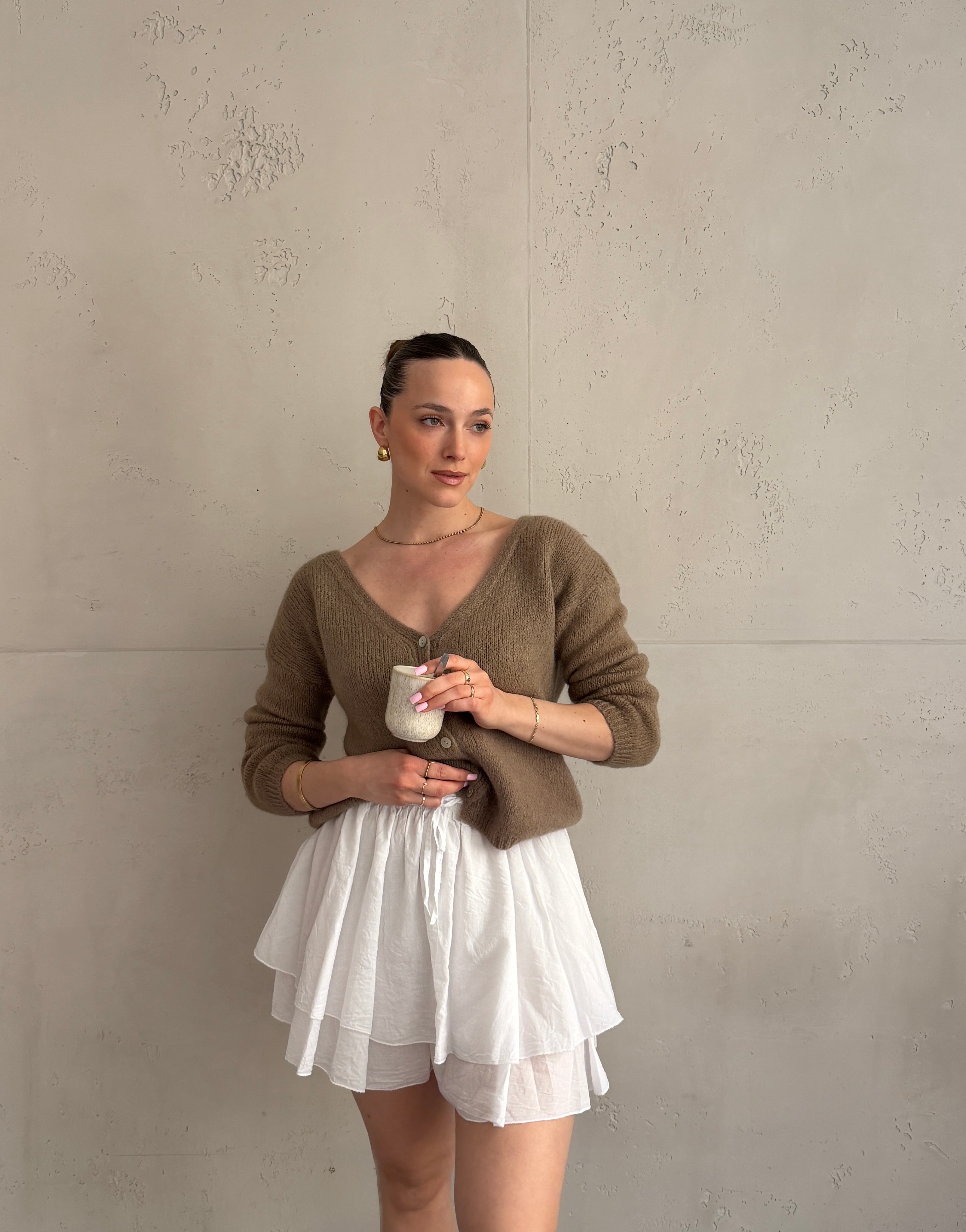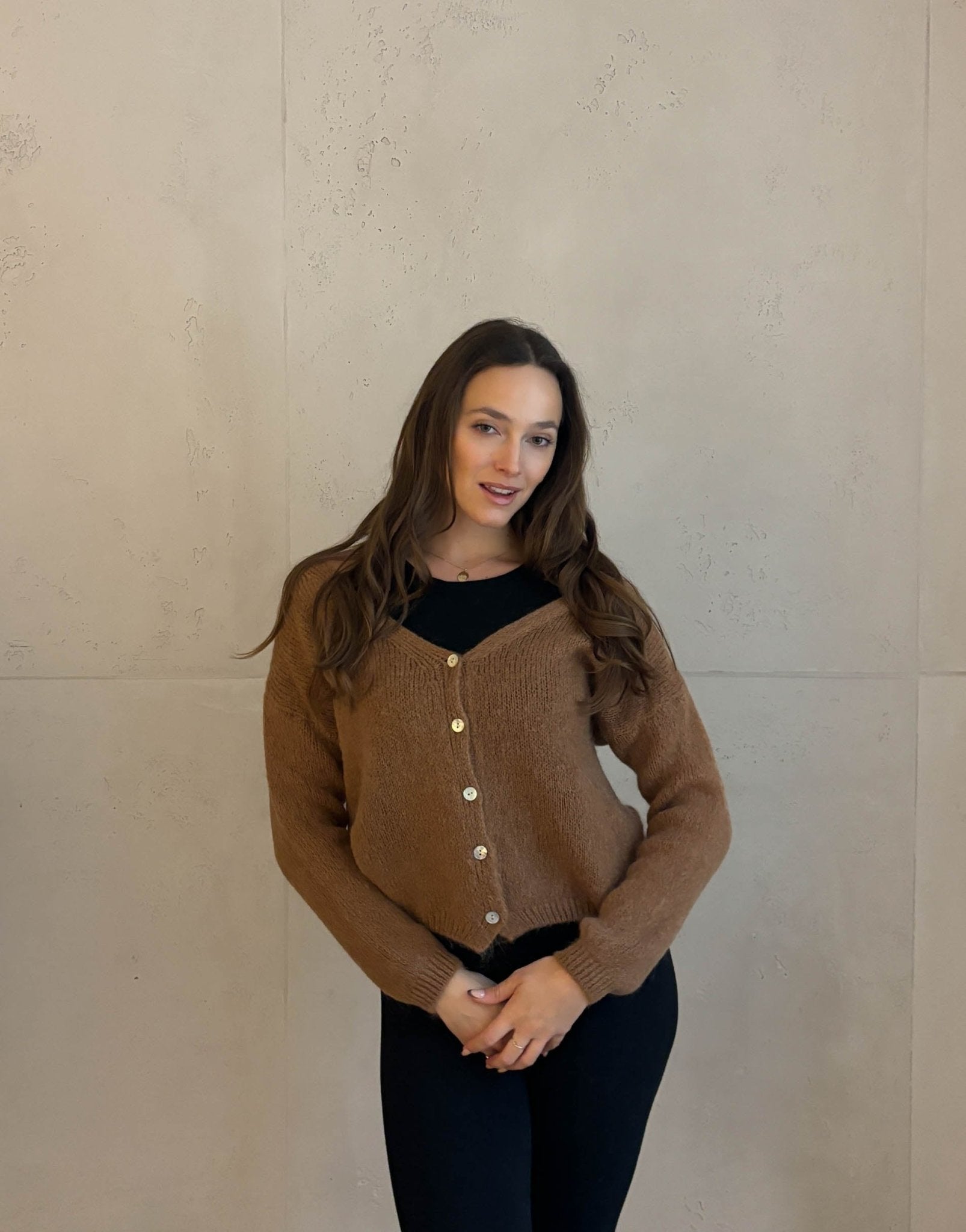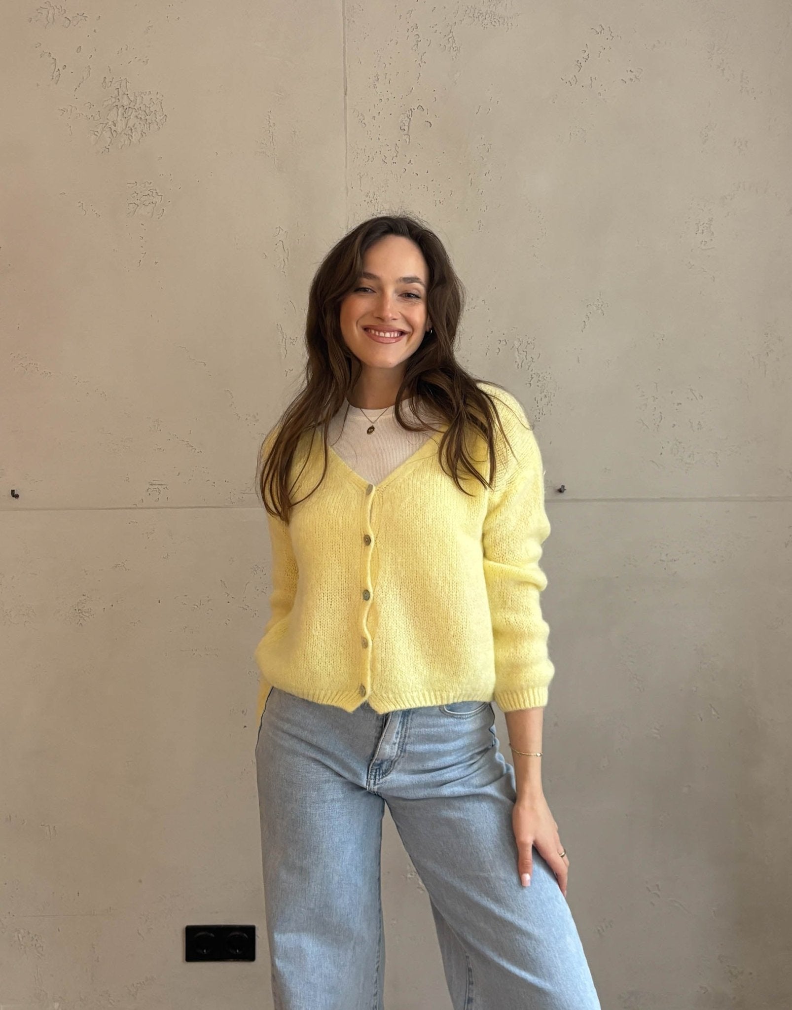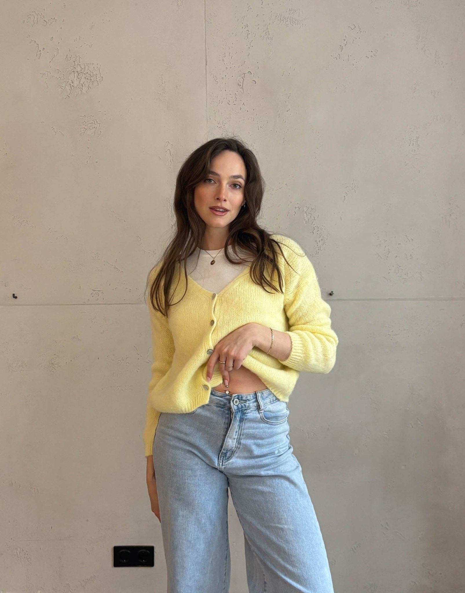3 BewertungenKurze Mohair Strickjacke mit V-Ausschhnitt