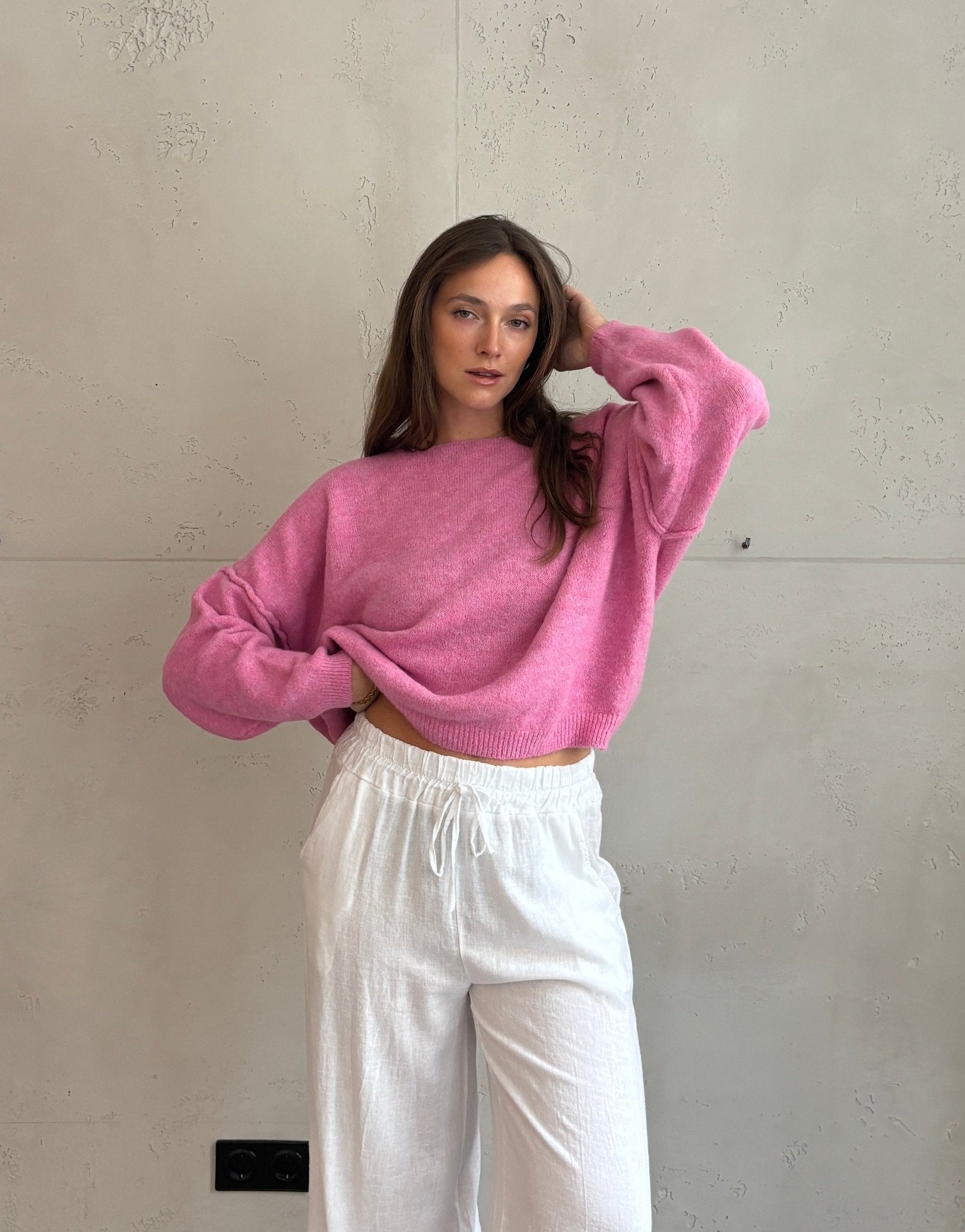 Oversize Zopfstrick Pullover mit leicht ausgestelltem Arm