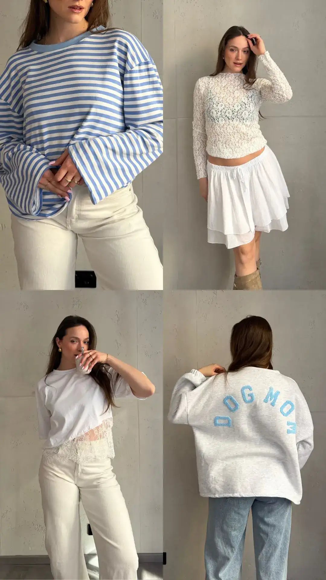 Gestreiftes Sweatshirt mit Langarm und Rundhals