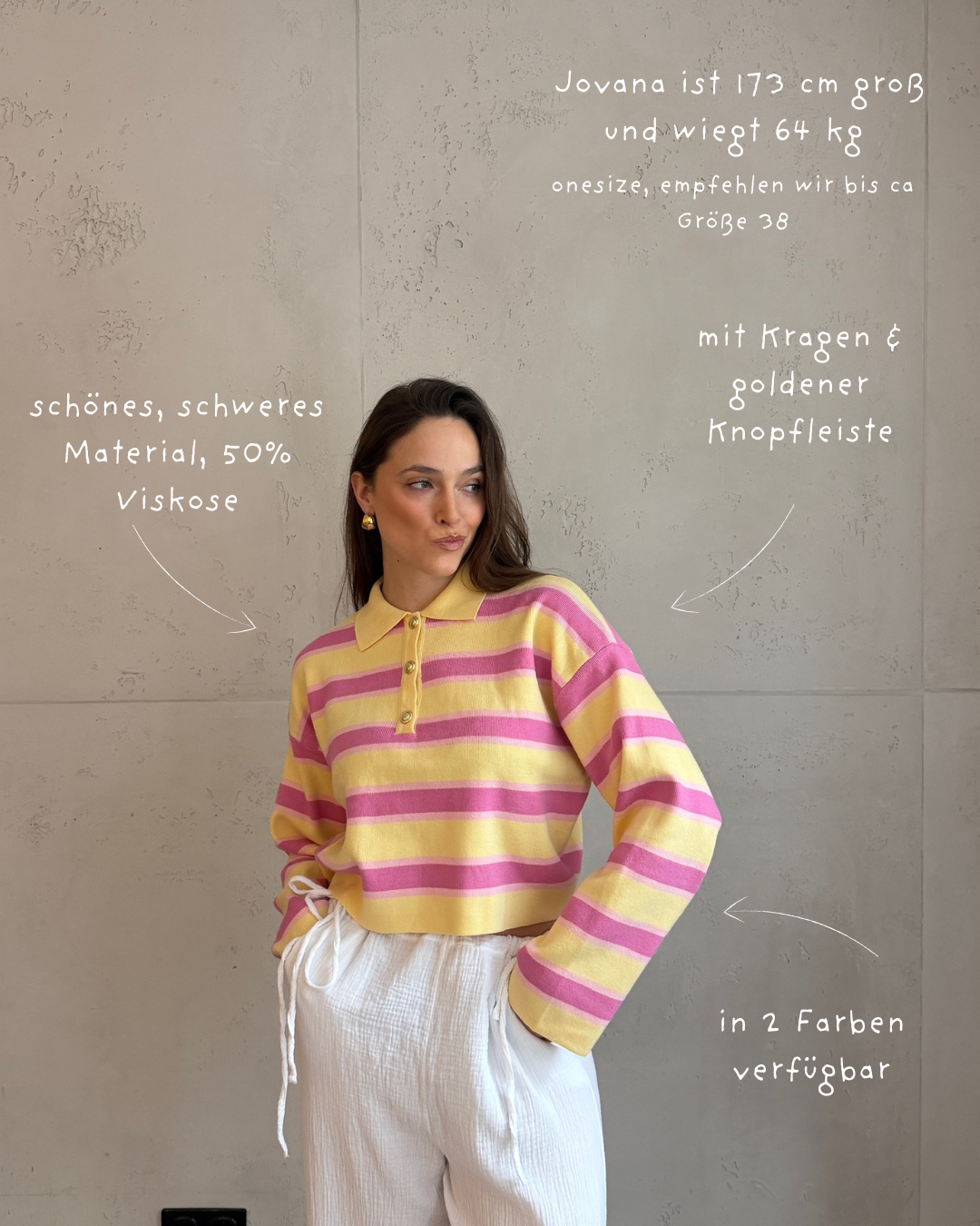 Gestreiftes Polo Strickshirt mit Goldenen Knöpfen