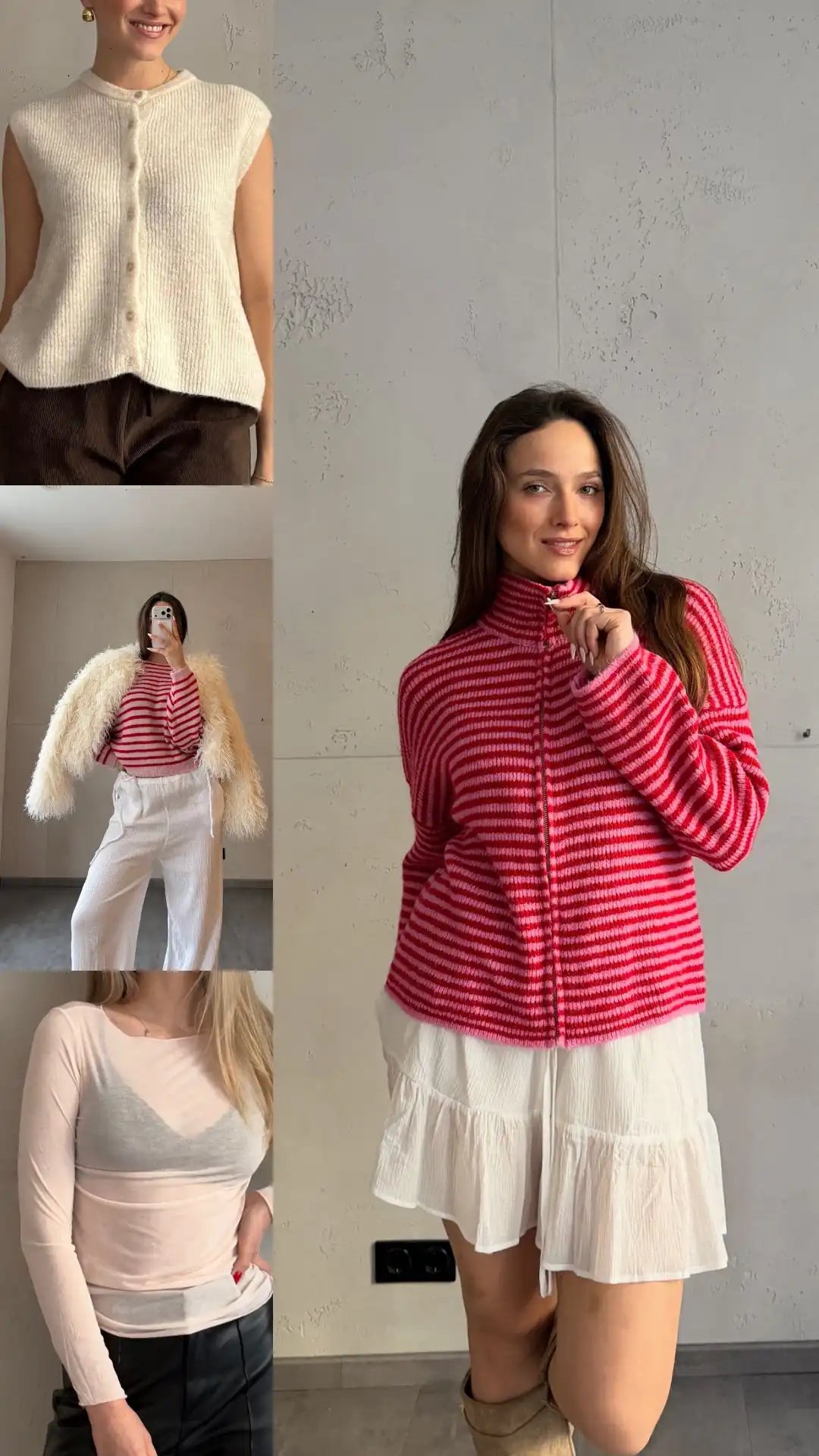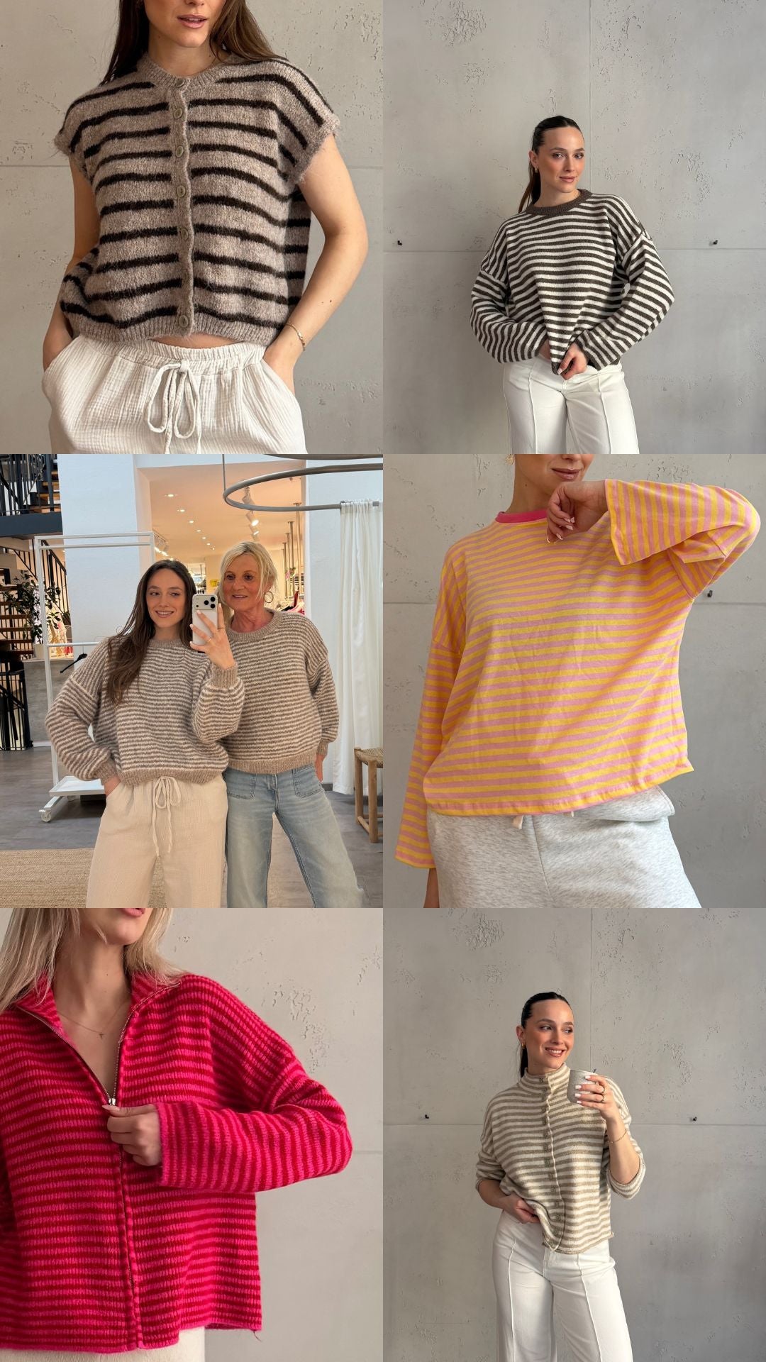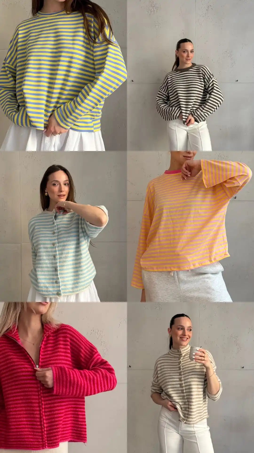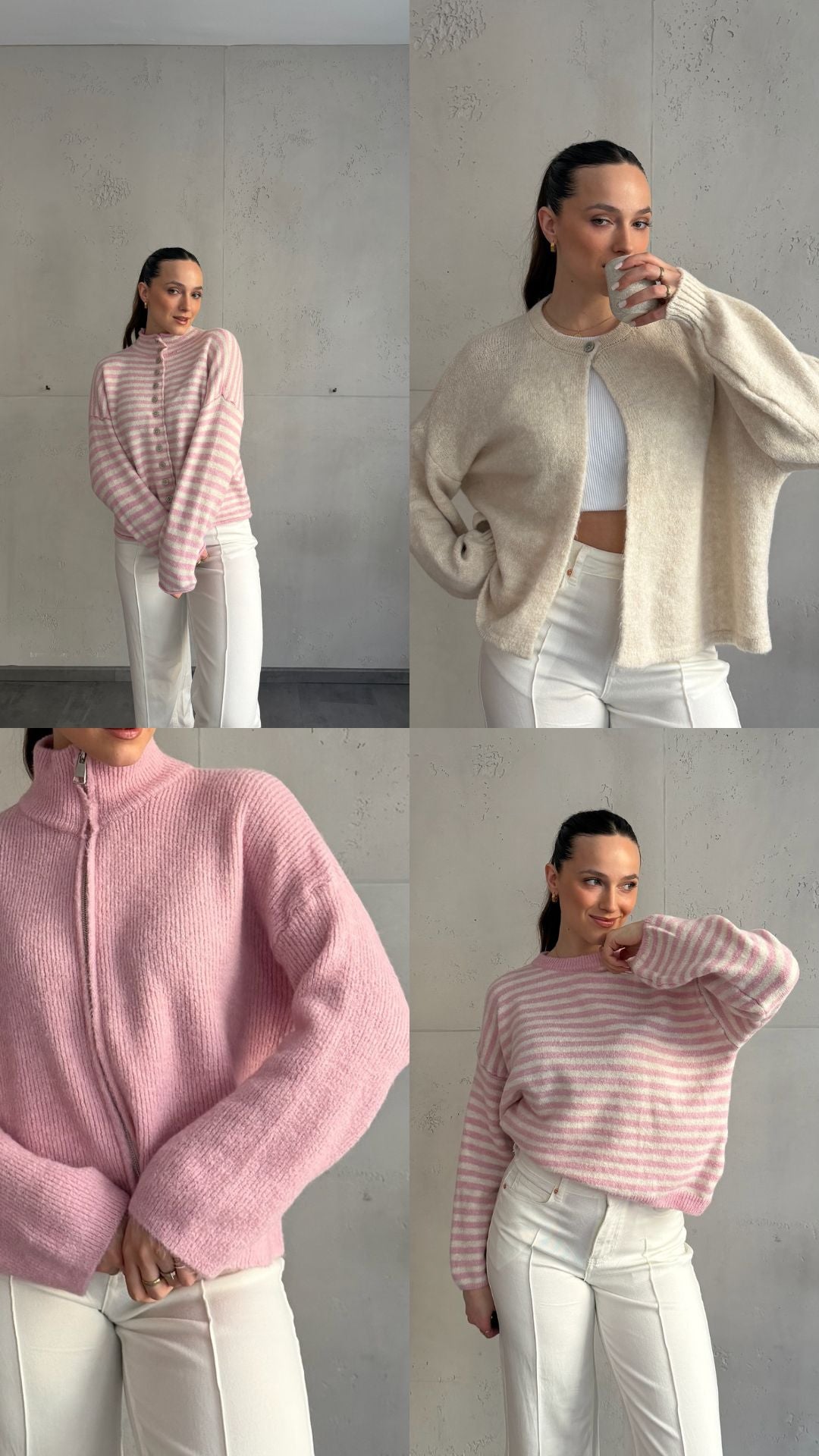 Gestreifte Strickjacke mit Reißverschluss & Stehkragen