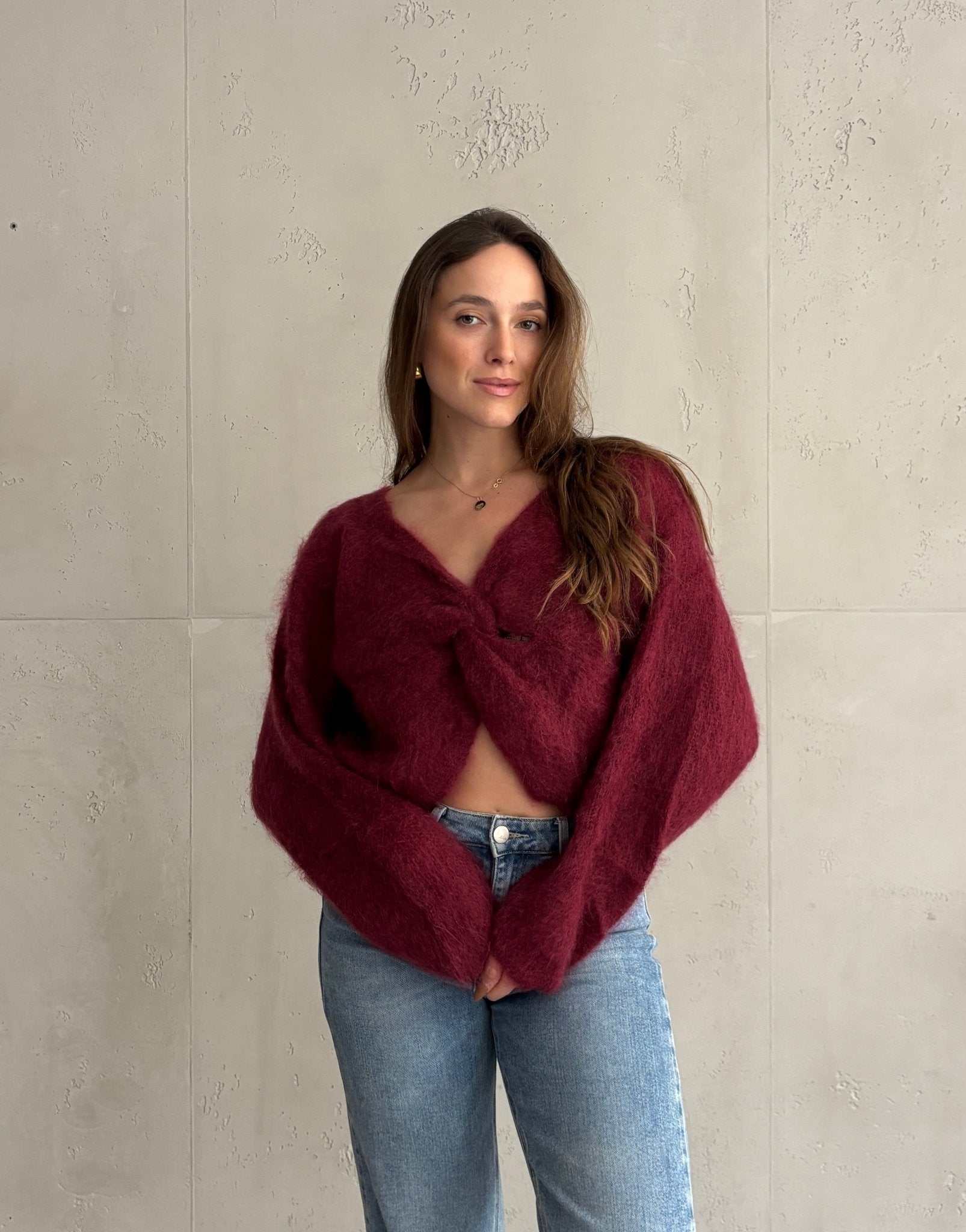 80% Kid-Mohair Pullover mit Knotendesign