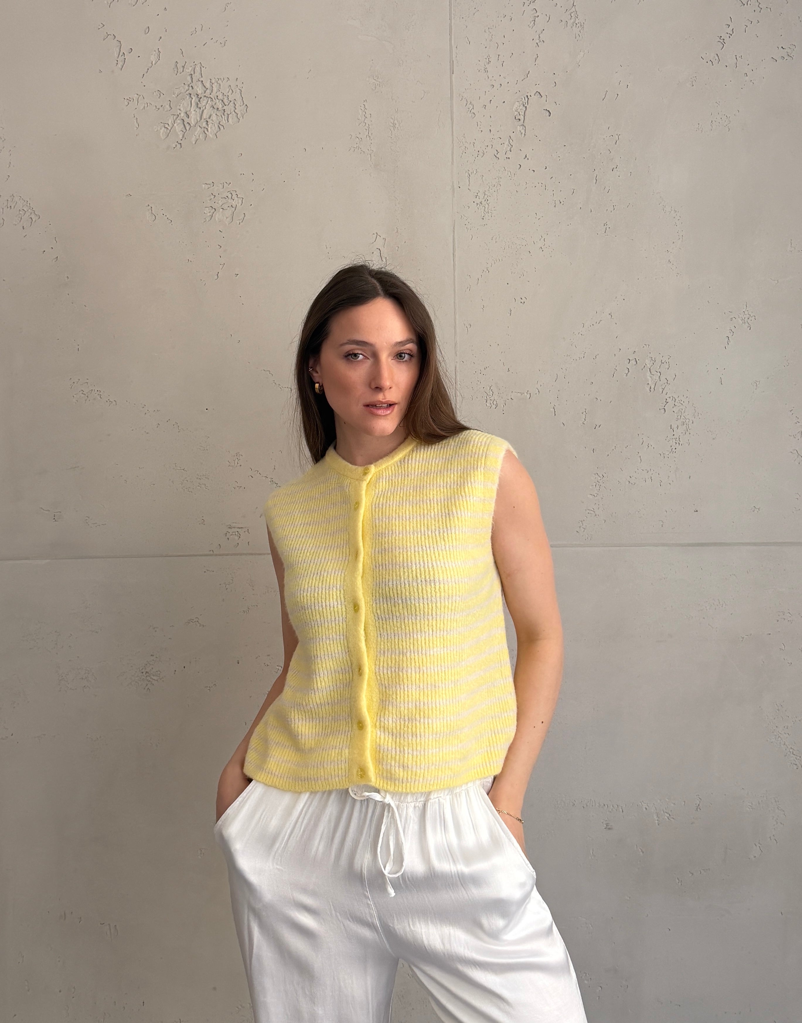 6 BewertungenGestreifter Pullunder mit Knopfleiste