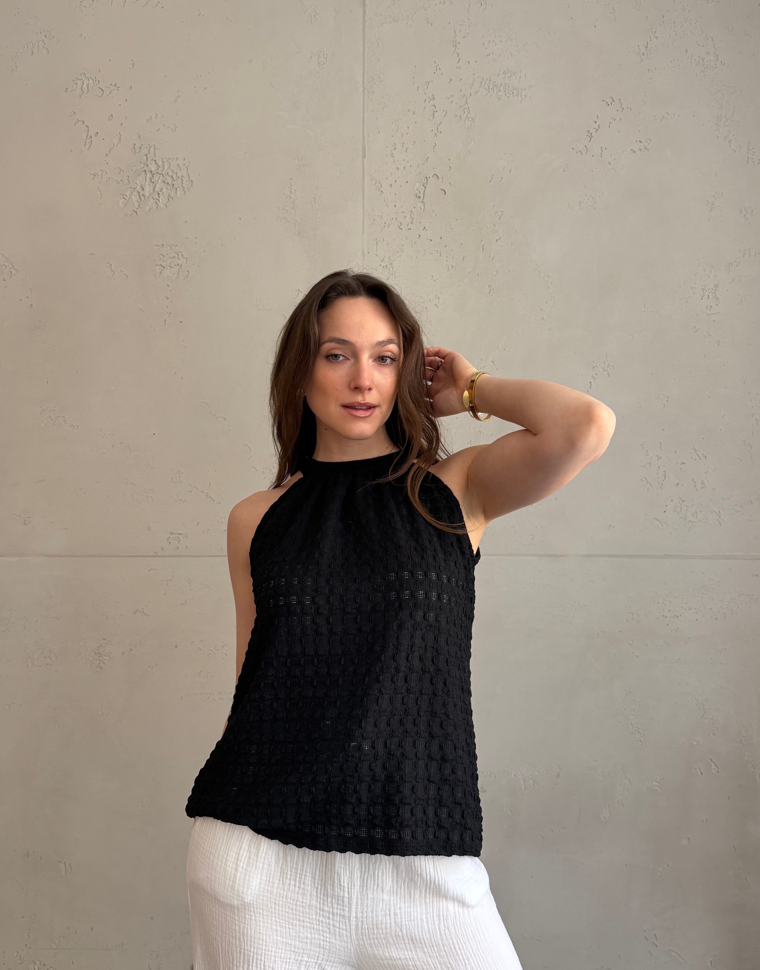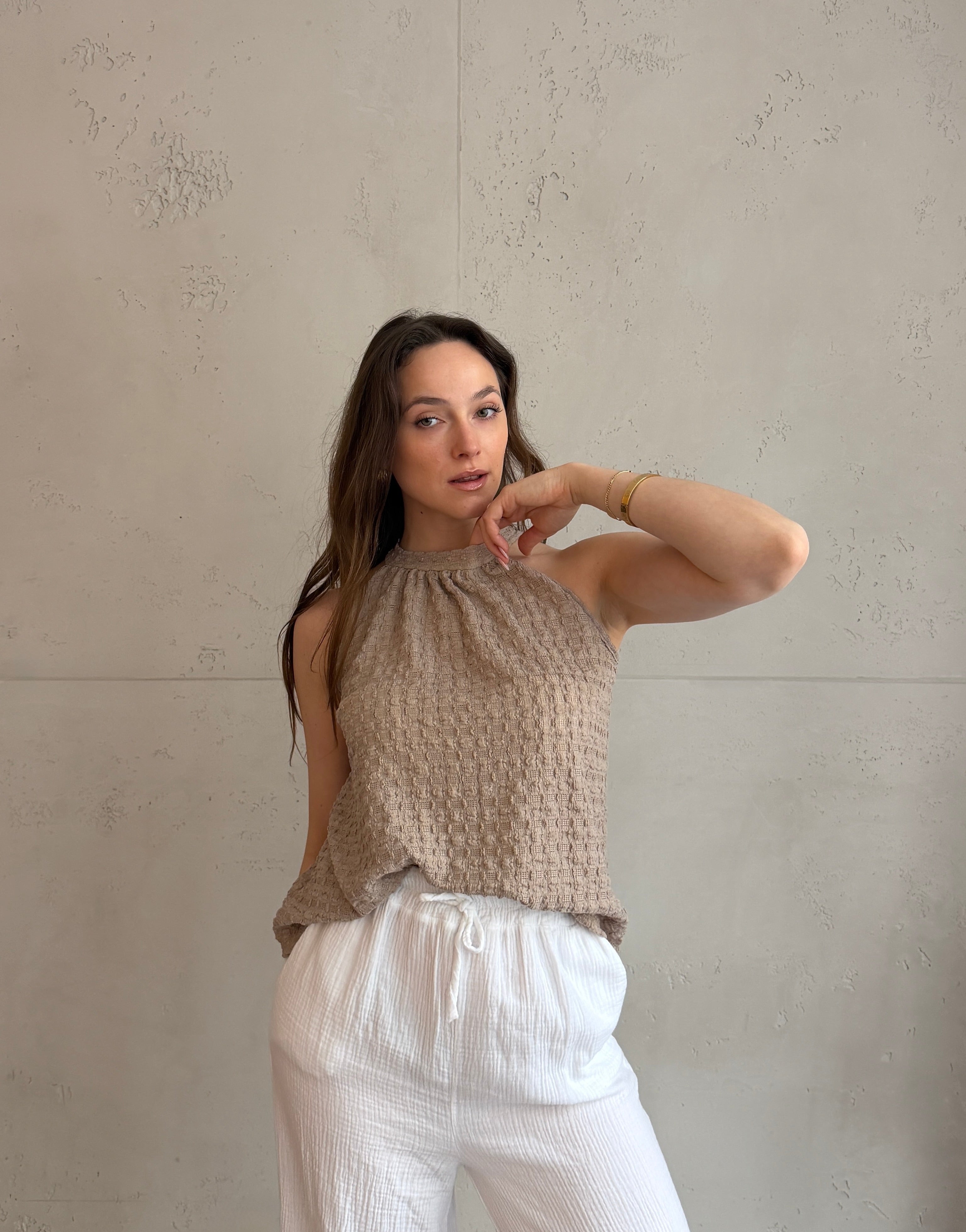 Top in Waffelstruktur mit Schleife – Krepp-Material