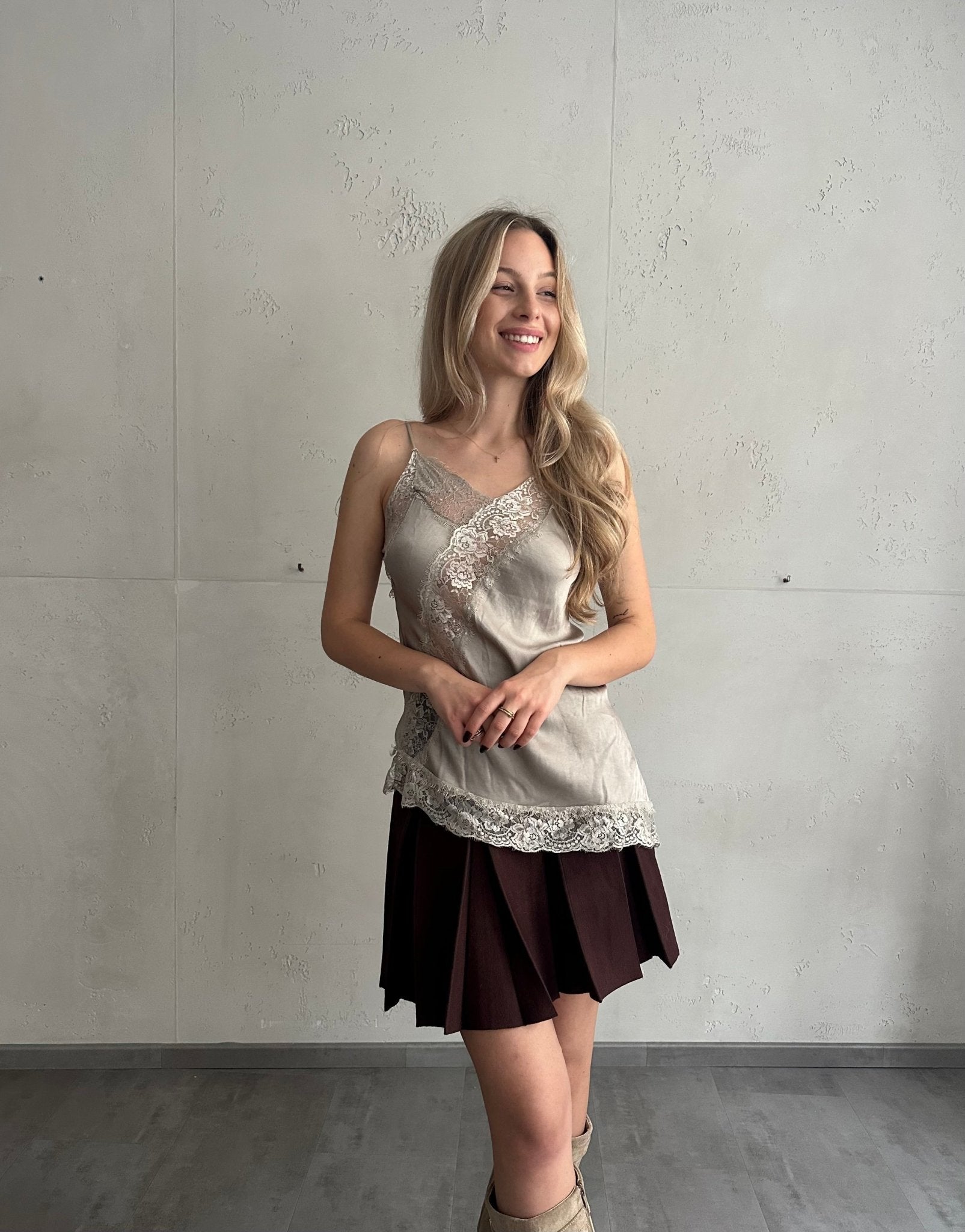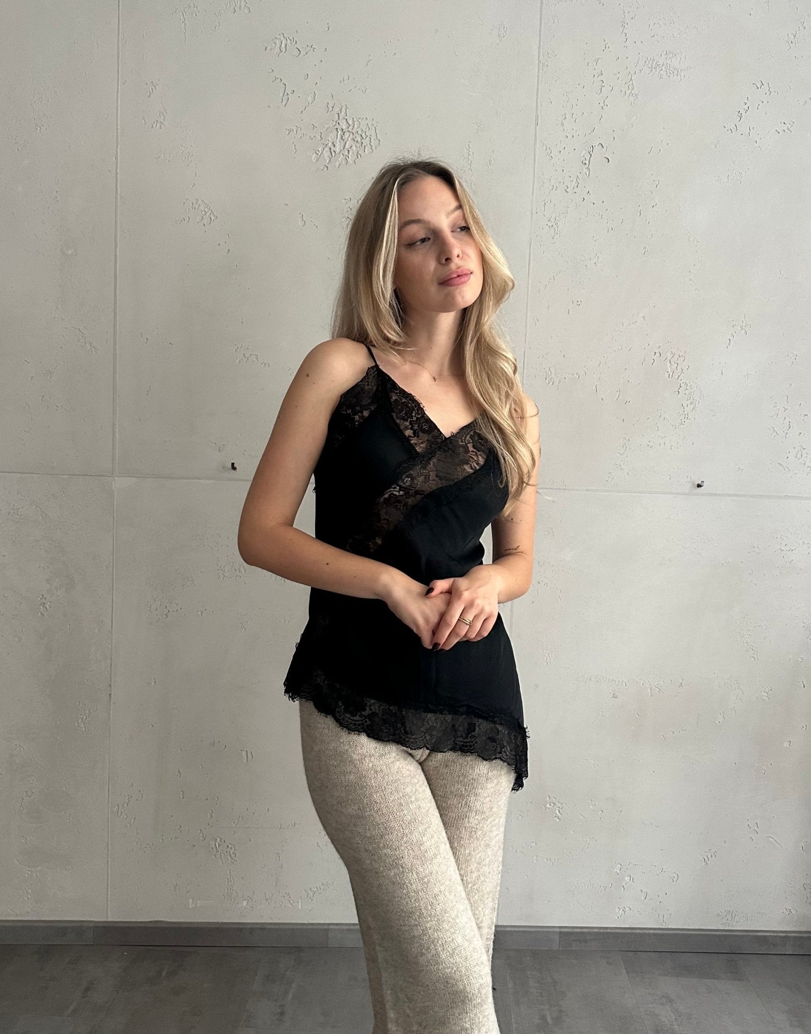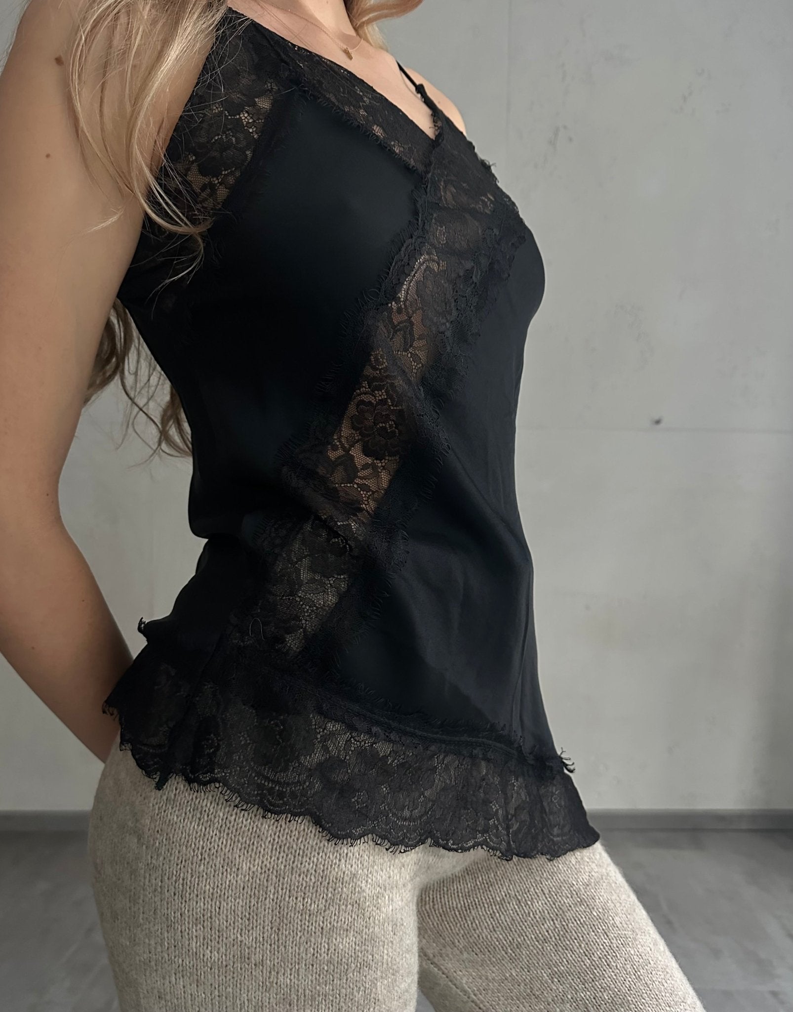 Asymmetrisches Spitzentop aus Seide & Viskose