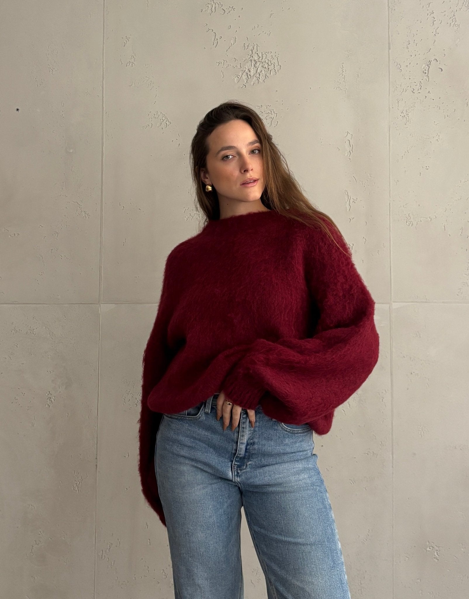 Kuschel-Pullover – Oversize mit weitem Ärmel & Bund