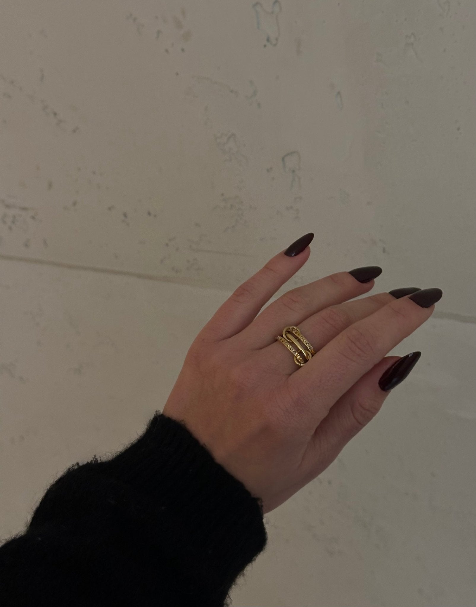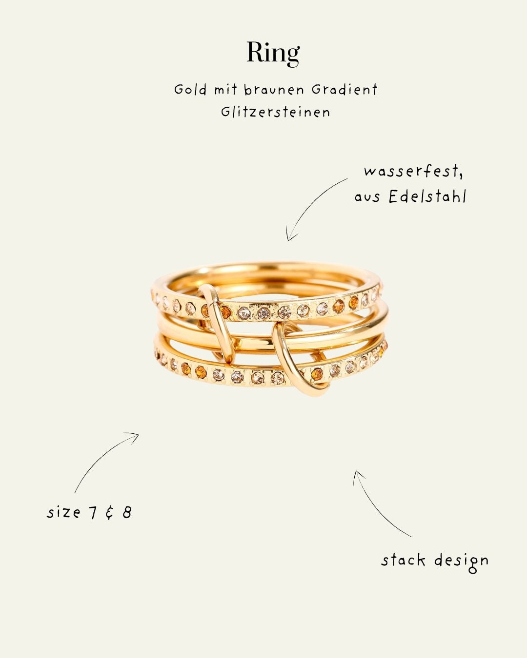 3-Layer Goldring mit Zirkonia – Gradient Glitzersteine in Braun, Pink & Blau