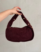 Kleine Leder-Handtasche mit Nieten – Burgundy / Braun
