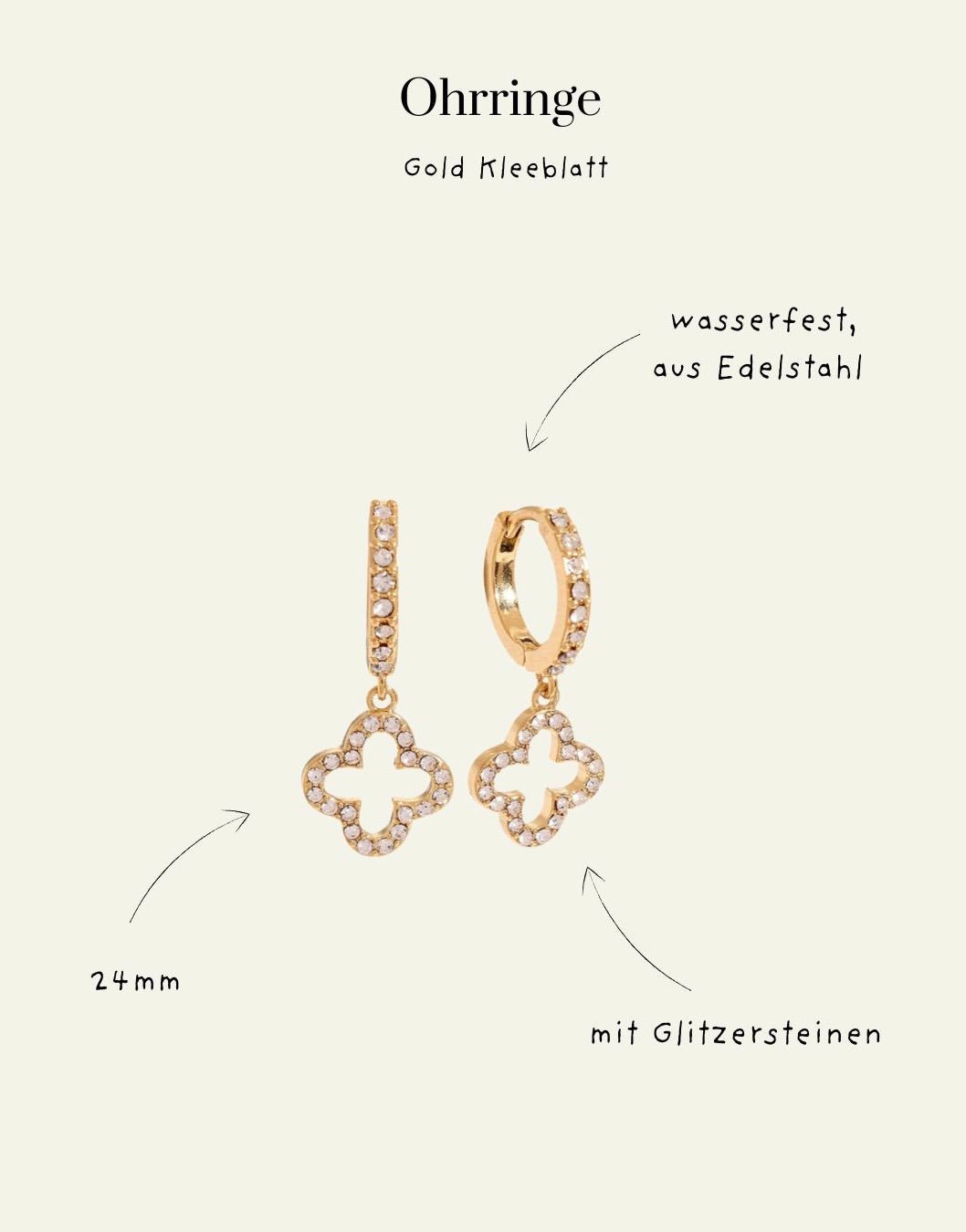 Goldene Ohrringe mit Kleeblatt & Zirkonia