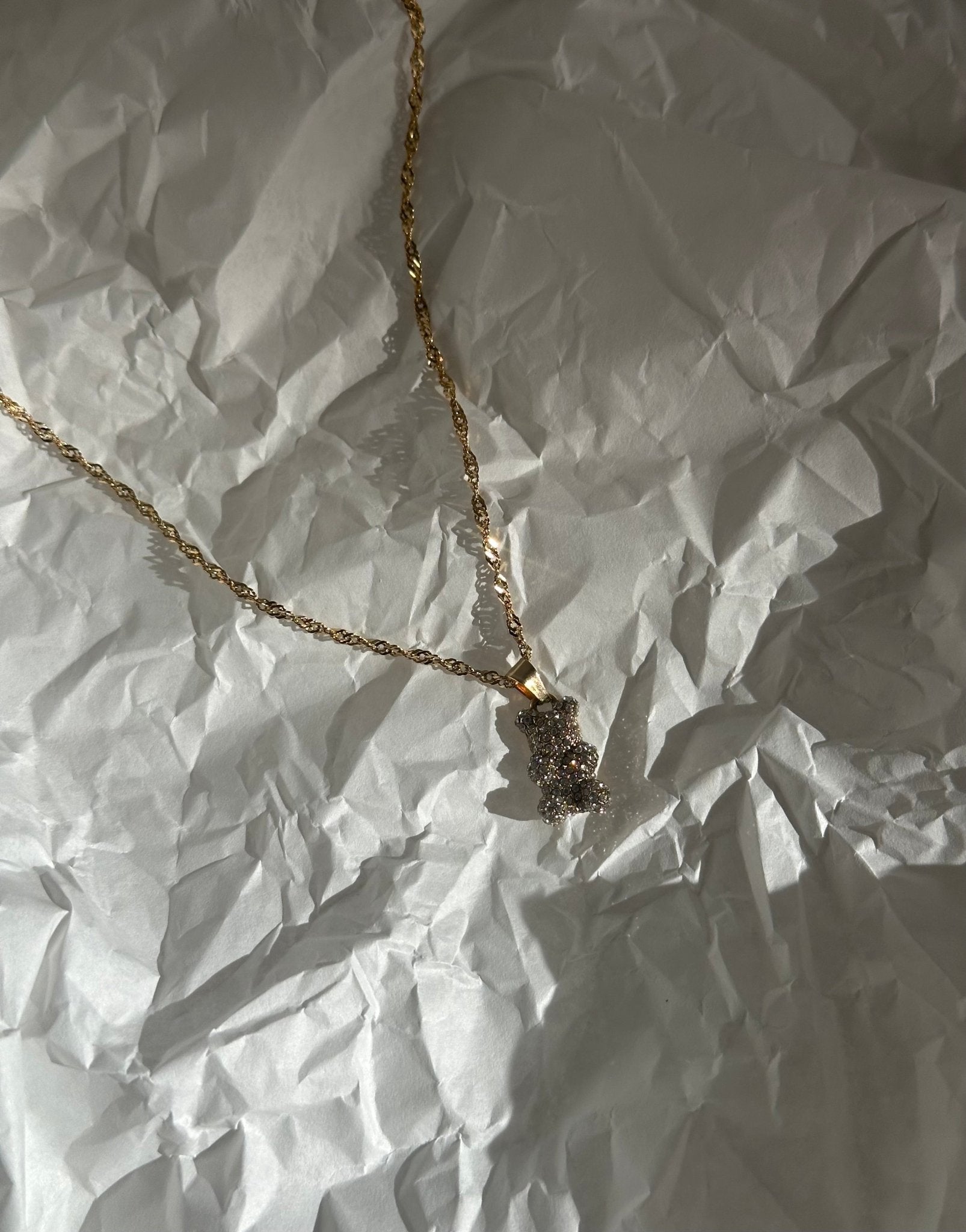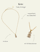 Diese goldene Teddy-Kette jetzt sichern – ein verspieltes Detail mit funkelndem Finish, perfekt als Geschenk oder Lieblingsstück. ✨ Passende Ohrringe & Armbänder findest du in Accessoires.