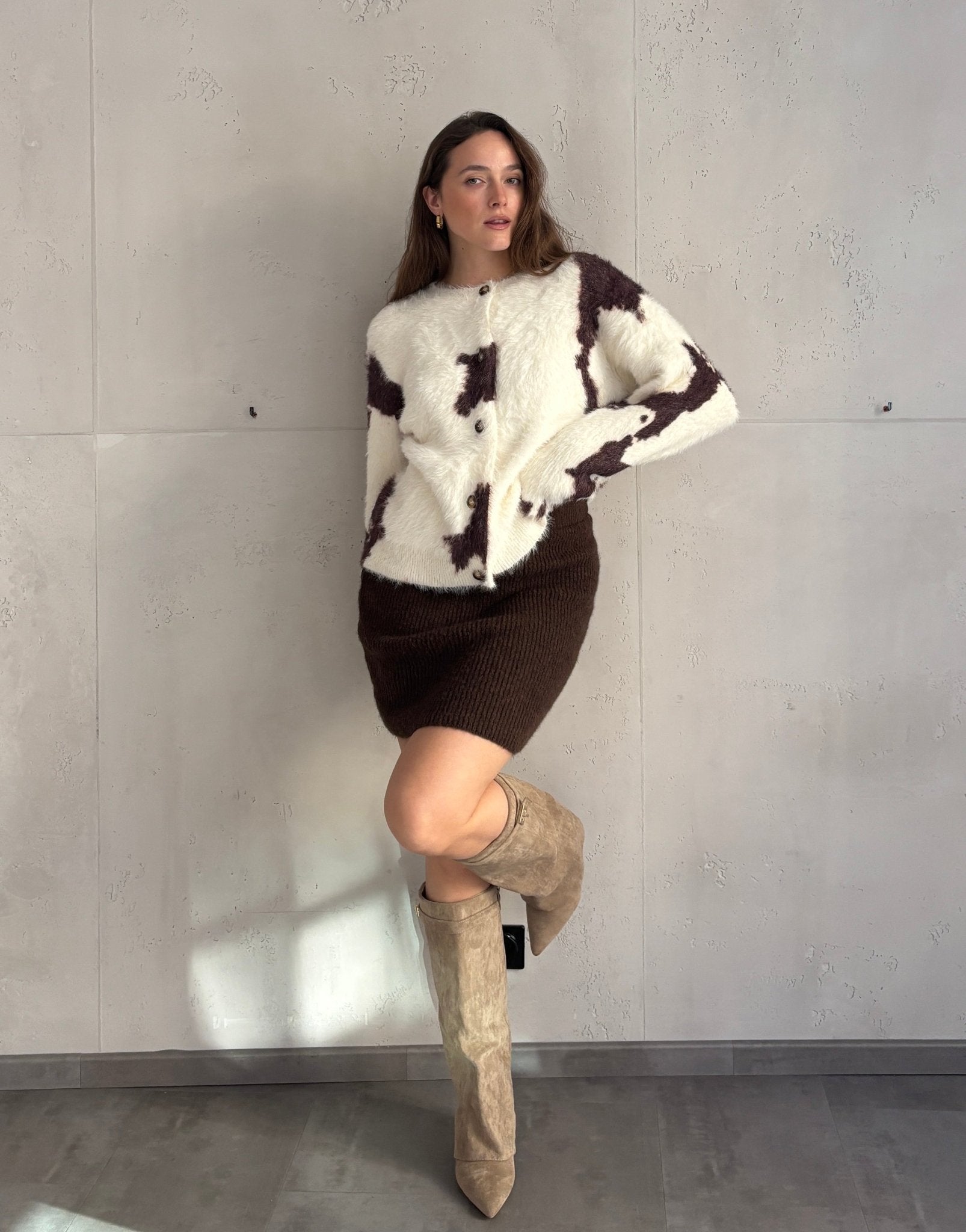 Cow-Strickjacke mit Knöpfen & Rundhals