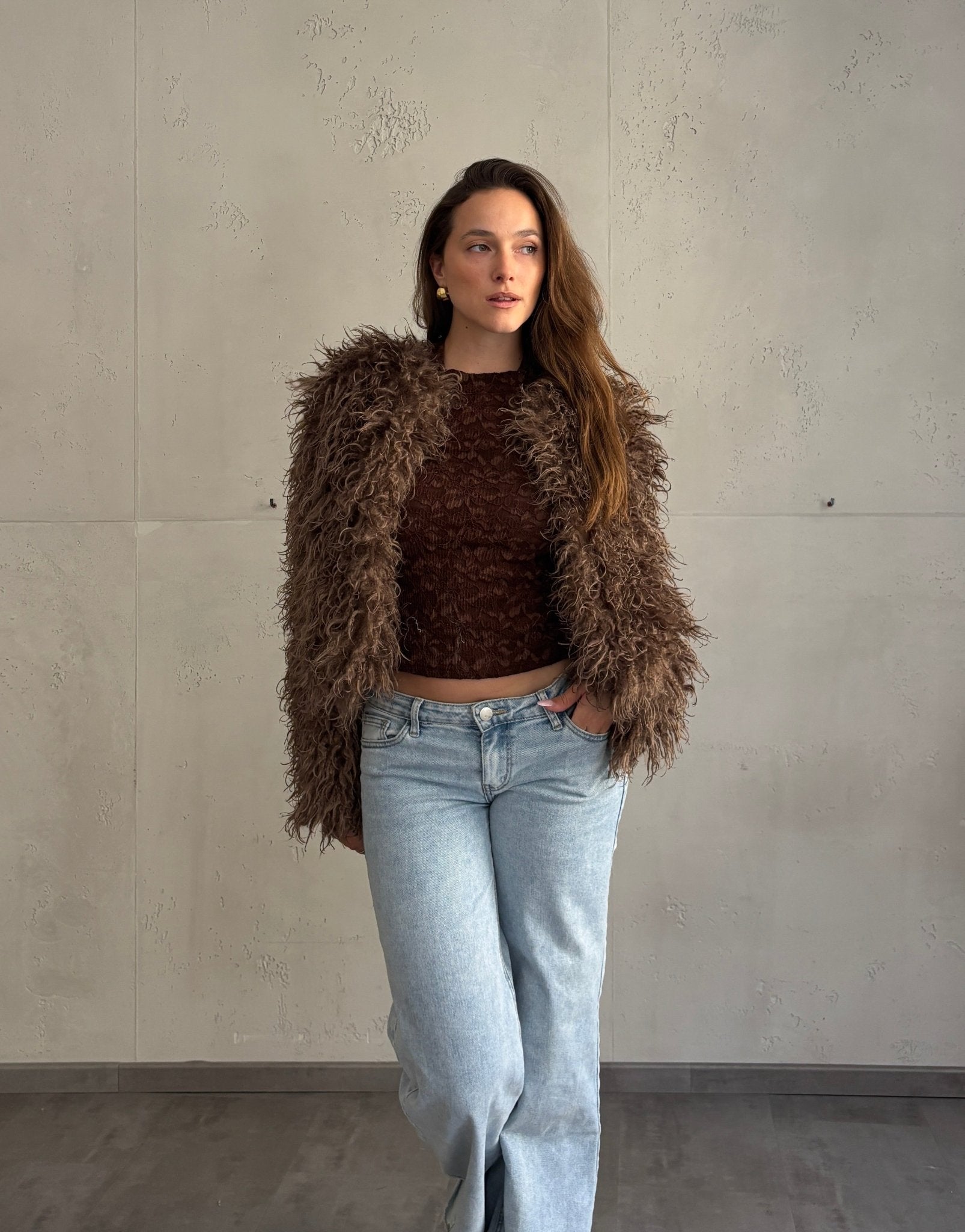 Fluffy Felljacke – kurz geschnittene Kunstfelljacke