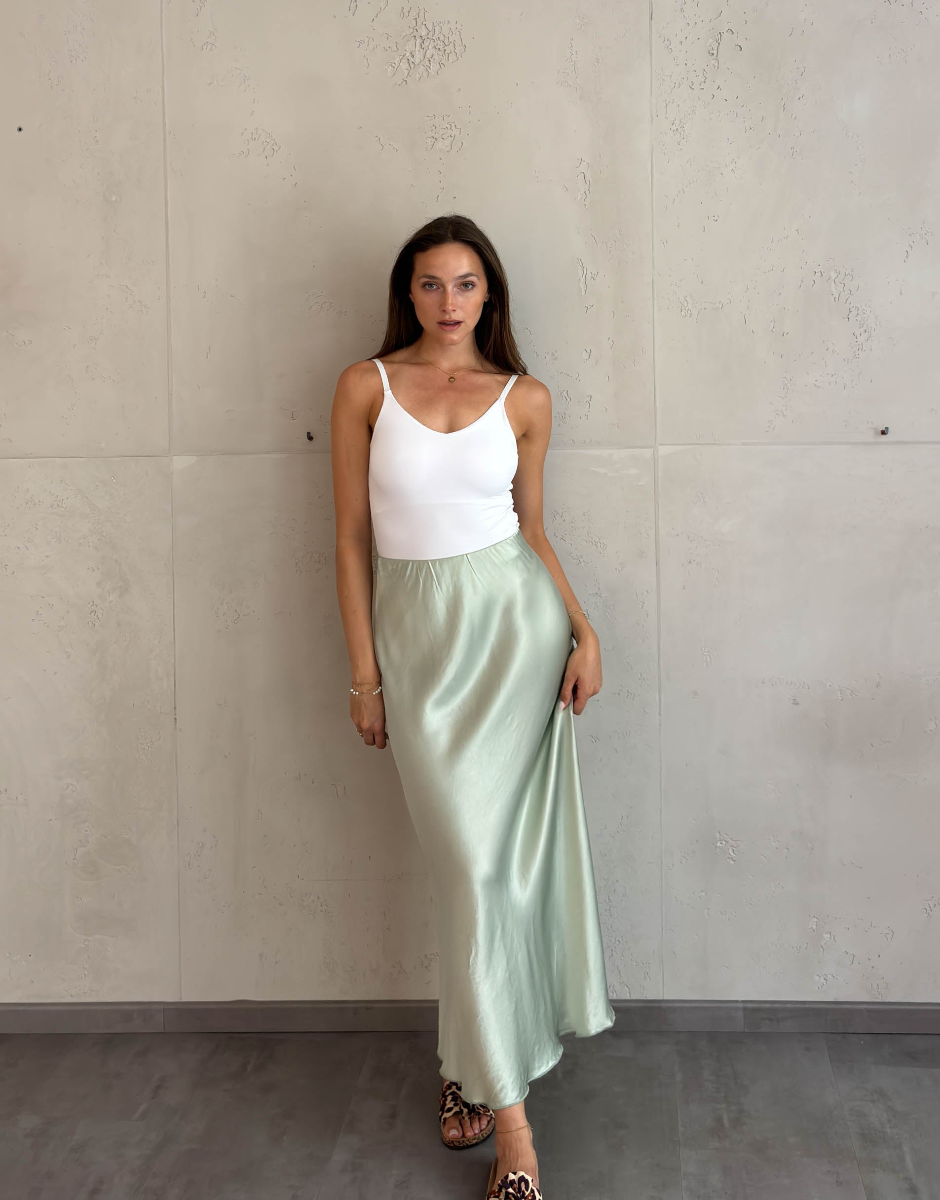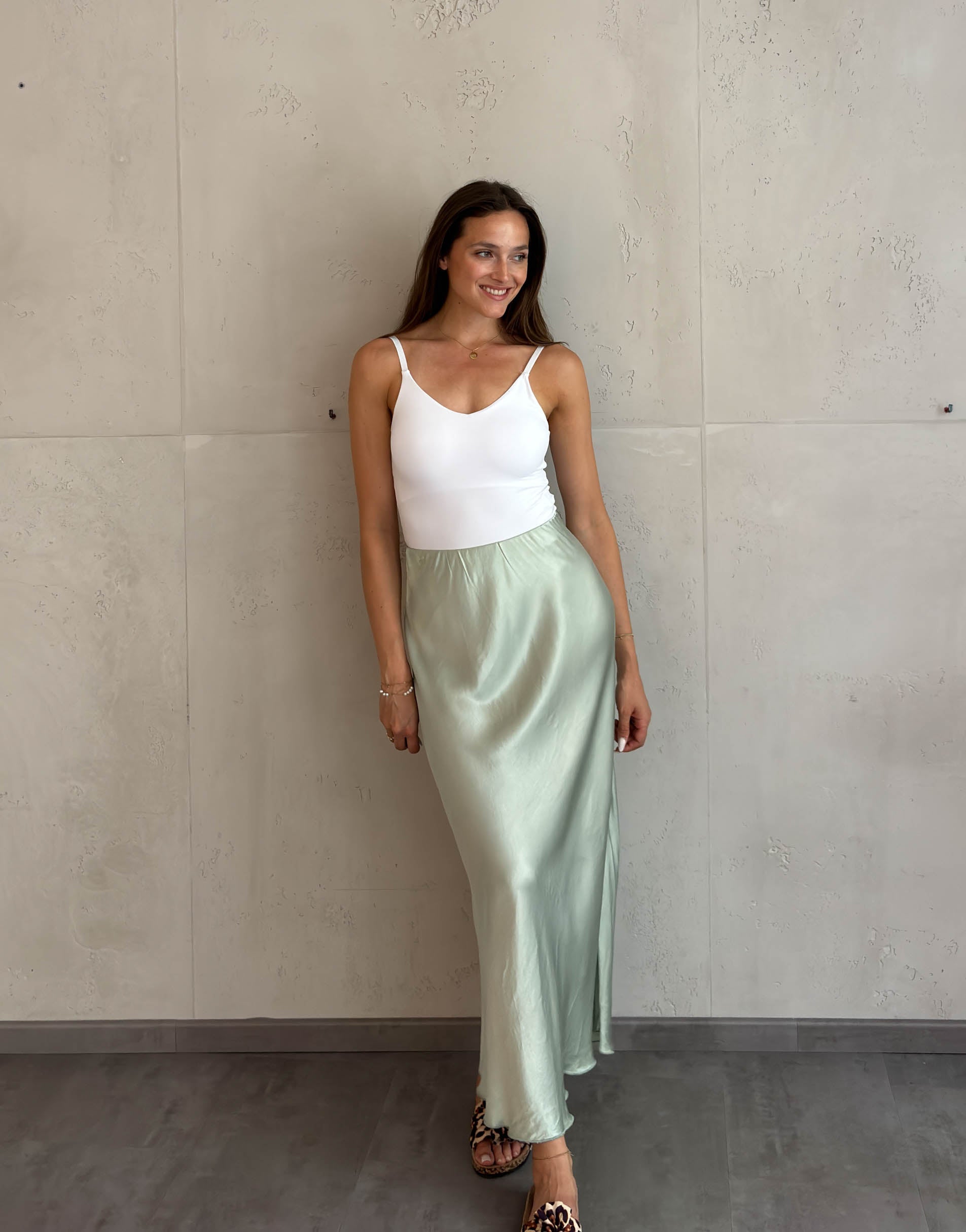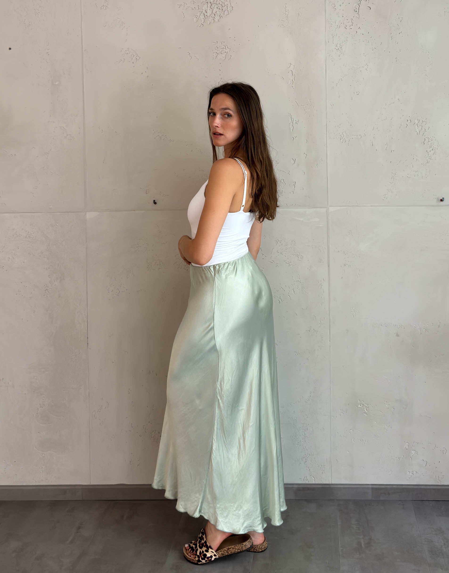 Bereit für ein Stück, das deinen Kleiderschrank revolutioniert? Der Maxi Silky Rock in Salbei ist genau das, wonach du gesucht hast! Mit seiner fließenden Silhouette und dem glänzenden Material zaubert er einen Hauch von Luxus in jedes Outfit.