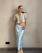Dieser Maxi Silky Rock ist nicht einfach nur ein Kleidungsstück - er ist eine Liebeserklärung an feminine Mode. Das seidige Material schmiegt sich sanft an deine Silhouette und verleiht dir eine unwiderstehliche Ausstrahlung. Die Farbe Salbei ist dabei ein echter Hingucker und lässt sich vielseitig kombinieren.