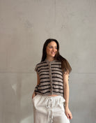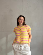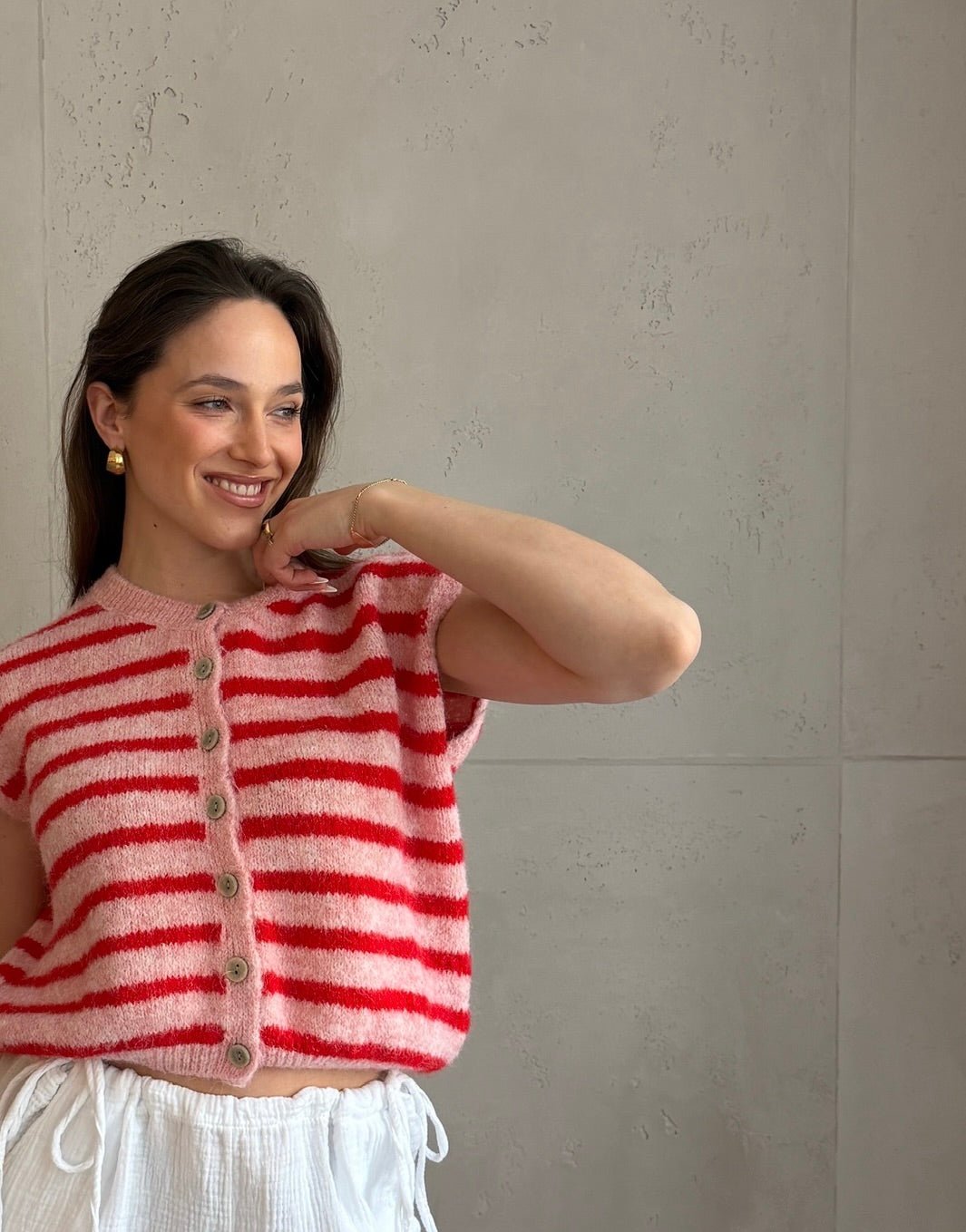 Gestreifter Pullunder mit Knöpfen & Übergeschnittener Schulter