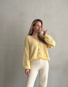 Gestreifte Strickjacke mit V-Ausschnitt