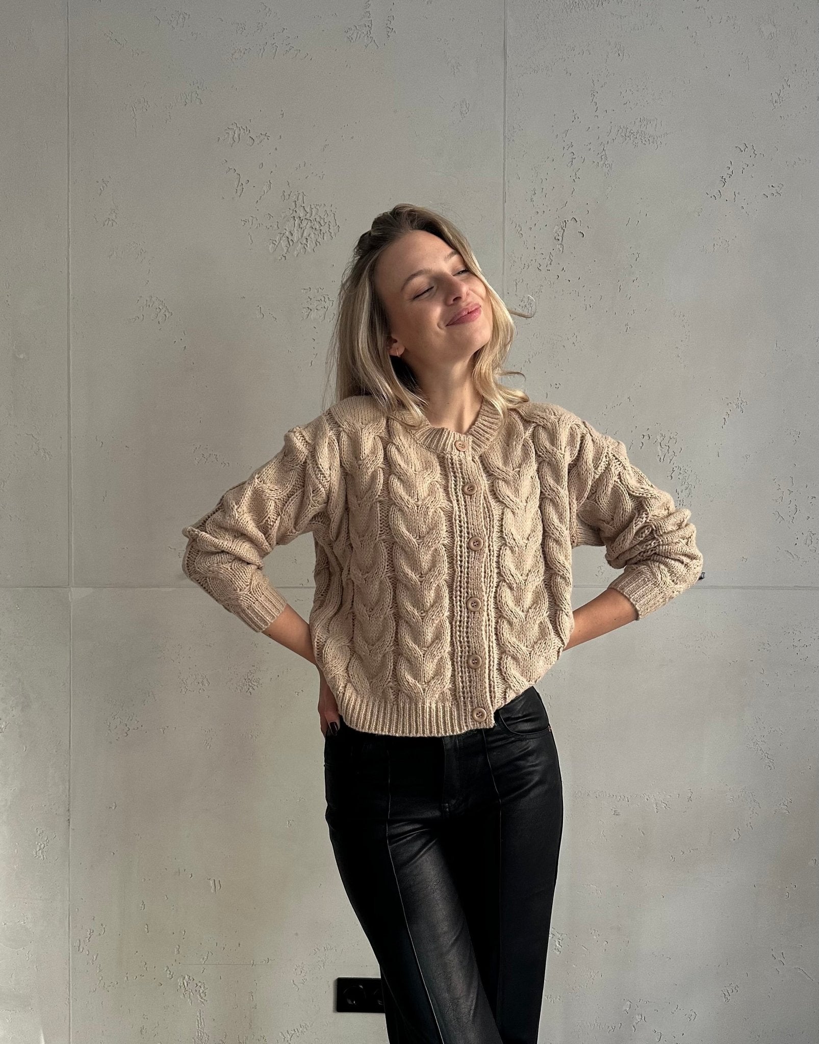 Strickjacke mit Zopfmuster – kurz geschnitten & weich