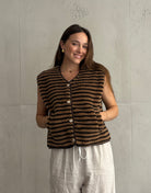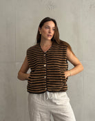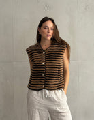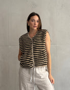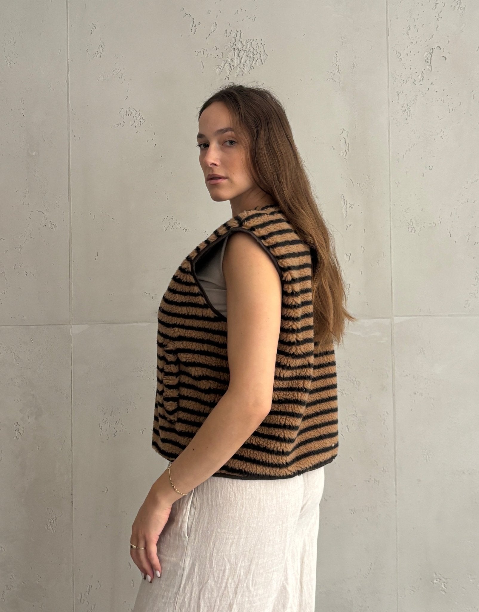 Teddy Weste mit Streifen & goldenen Druckknöpfen