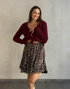Dieser kurze Leo Rock ist nicht nur ein Blickfang, sondern auch unglaublich vielseitig. Er lässt sich hervorragend kombinieren und sorgt dafür, dass du immer gut gestyled bist. Der Gummizug bietet Bewegungsfreiheit, während der Leoprint deinem Outfit einen modernen Twist verleiht.