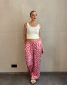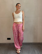 Diese silky Hose mit floraler Note bringt genau den Vibe, der nach Sonne, Leichtigkeit und good moods schreit. Das weiche Material und der luftige Schnitt machen sie zum perfekten Piece für heiße Tage. Kombiniert mit einem leichten Top oder Basic T-Shirt entsteht ein effortless Look, der gleichzeitig cool und feminin ist.