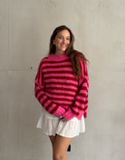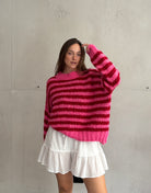 Statement-Stripes treffen auf cozy Knit – perfekt für effortless Layering. Harmoniert mega mit High-Waist-Denim und Wide-Leg-Silhouetten aus der Kategorie Hosen. Für einen chicen Contrast-Look über ein Slip-Dress aus der Kategorie Kleider layern. Finish mit minimalistischen Pieces aus Accessoires und cleanen Sneakern/Boots.