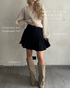 Der kurze Faltrock überzeugt durch seinen femininen, leicht ausgestellten Schnitt und das hochwertige, schwer fallende Material. Ideal für Alltag, Dinner oder Office – elegant, aber easy zu stylen. Kombiniere ihn mit einem Basic-Top oder einem Strickpullover für einen harmonischen Look. Weitere passende Styles findest du in den New Arrivals.