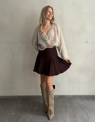 Dieser kurze Faltrock aus schwerem Viskose-Mix ist ein echtes Keypiece – feminin, hochwertig & vielseitig. Jetzt in Schwarz oder Braun sichern, solange der Vorrat reicht. ✨ Entdecke passende Oberteile und Unterteile für deinen kompletten Look.