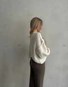 Die kurze Strickjacke mit goldenen Knöpfen ist ein echter Blickfang – elegant und modern zugleich. Der weite Arm, die überschnittenen Schultern und die sichtbare Außennaht verleihen dem Look eine entspannte Note, während die goldenen Knöpfe für einen edlen Akzent sorgen. Ideal kombinierbar mit einer High-Waist-Hose oder über einem Kleid für einen femininen Übergangs-Look. Weitere trendige Knitwear findest du in unseren New Arrivals.