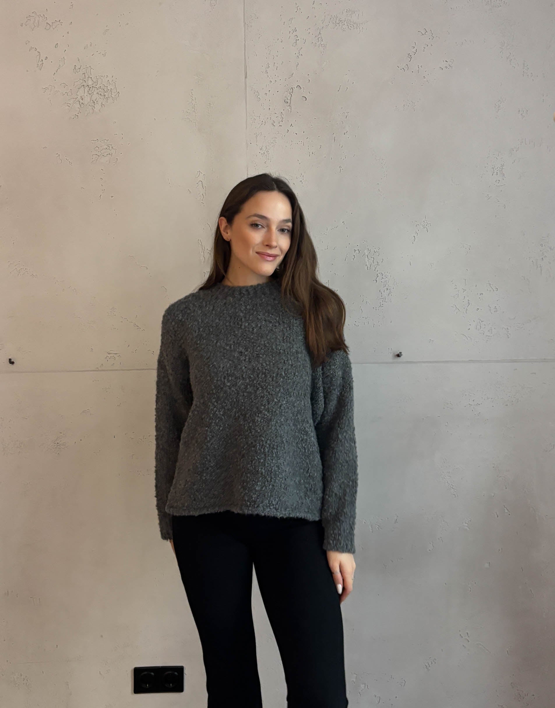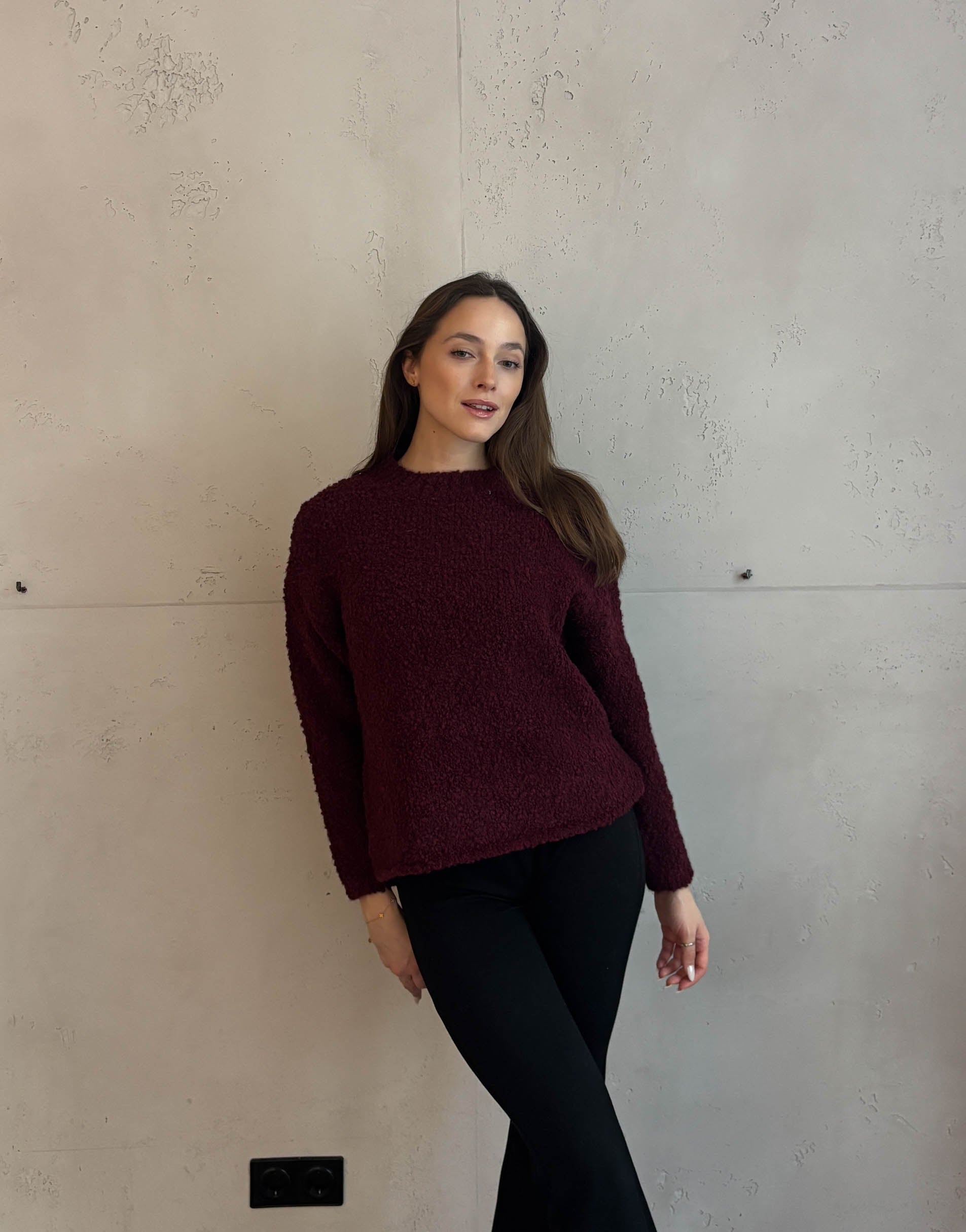 In den eleganten Farben Burgundy und Dunkelgrau erhältlich, lässt sich der Bouclé Pulli ganz einfach mit anderen Fashion-Pieces kombinieren. Ob zu einer stylischen Jeans, einem lässigen Rock oder einer eleganten Jacke, dieser Pullover wird im Handumdrehen zum neuen Lieblingsteil im Kleiderschrank.