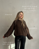 Der grob gestrickte Oversized Pullover ist dein neues Lieblingsstück – weich, schwer & stilvoll. Jetzt in Grau, Beige oder Braun sichern, solange der Vorrat reicht. ✨ Kombiniere ihn mit passenden Hosen oder einer Strickhose für den perfekten Cozy-Look.
