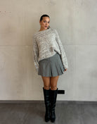 Der oversized melierte Pullover ist nicht nur ein Kleidungsstück, sondern ein echtes Statement. Mit seinem weichen, kuscheligen Material und dem lässigen Schnitt wird er schnell zum Lieblingsstück in jeder Garderobe. Egal, ob für einen entspannten Tag zu Hause oder einen Stadtbummel – dieser Pullover passt einfach immer!