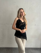 Dieses asymmetrische Spitzentop ist ein edles Keypiece – feminin, weich & vielseitig kombinierbar. Jetzt in Greige, Taupe oder Schwarz sichern – solange der Vorrat reicht. ✨ Passende Hosen oder Jacken findest du im Shop.