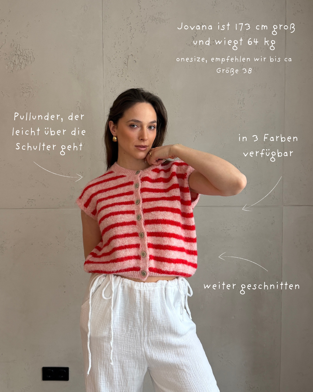 Gestreifter Pullunder mit Knöpfen & Übergeschnittener Schulter