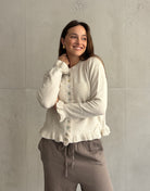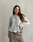 Beides. Das Design ist clean genug für daily Looks und dank Rüschen & Knopfleiste sofort „elevated“ – day-to-night ready.