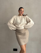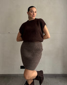 Der Strick ist kompakt. Die Wahrnehmung der Blickdichte kann je nach Farbe variieren; mit hautfarbener Unterwäsche wirkt der Look am ruhigsten.