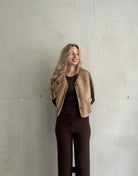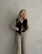 Diese Teddy Weste mit Wildlederdetails vereint Gemütlichkeit und Stil – ein echtes Must-have für die Saison. Jetzt in Braun oder Taupe sichern, solange der Vorrat reicht. ✨ Entdecke passende Oberteile und Hosen für den kompletten Look.