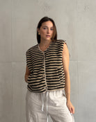 Die cropped Teddy Weste setzt sofort cozy Vibes. Easy zu High-Waist Denim oder Tailored Pants aus Hosen, über Feinstrick & Longsleeves aus Oberteile oder als Kontrast über ein Slip-Dress aus Kleider. Finish mit cleanen Boots/Sneakern aus Schuhe und minimalistischen Accessoires. Weitere Outerwear in Jacken & Mäntel.