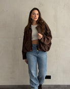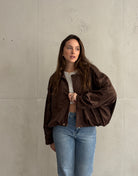 Diese braune Wildlederjacke jetzt sichern – das virale Trendpiece der Saison. Perfekt kombinierbar mit weiten Hosen oder Basic Oberteilen für einen modernen Look. ✨