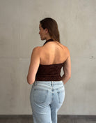 Neckholder Top – Coffee mit dezentem Flower-Detail