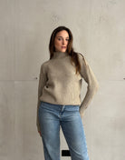 Gerippter Pullover mit Stehkragen