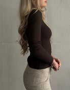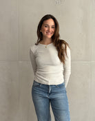 Dieses Basic Longsleeve ist ein unverzichtbares Essential – schlicht, bequem und vielseitig kombinierbar. Der figurbetonte Schnitt und die feine Rippstruktur sorgen für eine schöne Silhouette, während der elastische Baumwollmix angenehm auf der Haut liegt. Ideal als Solo-Teil oder unter Strick, Westen oder Jacken. Besonders schön in Kombination mit unserer Strickhose oder einem Set für einen modernen Alltagslook. Weitere Neuheiten findest du in den New Arrivals.