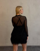 Das Netzoberteil aus der X-Mas Collection ist das Highlight für jeden festlichen Anlass. Es vereint edgy Stil mit einem Hauch von Eleganz und lässt sich perfekt mit verschiedenen Outfits kombinieren. Besonders gut macht sich das Oberteil in Kombination mit dem Mini Fransenkleid, was den Look noch aufregender und stylischer wirken lässt. Die Netzstruktur verleiht dem Outfit einen modernen, coolen Touch, während das elastische Material für maximalen Komfort sorgt.