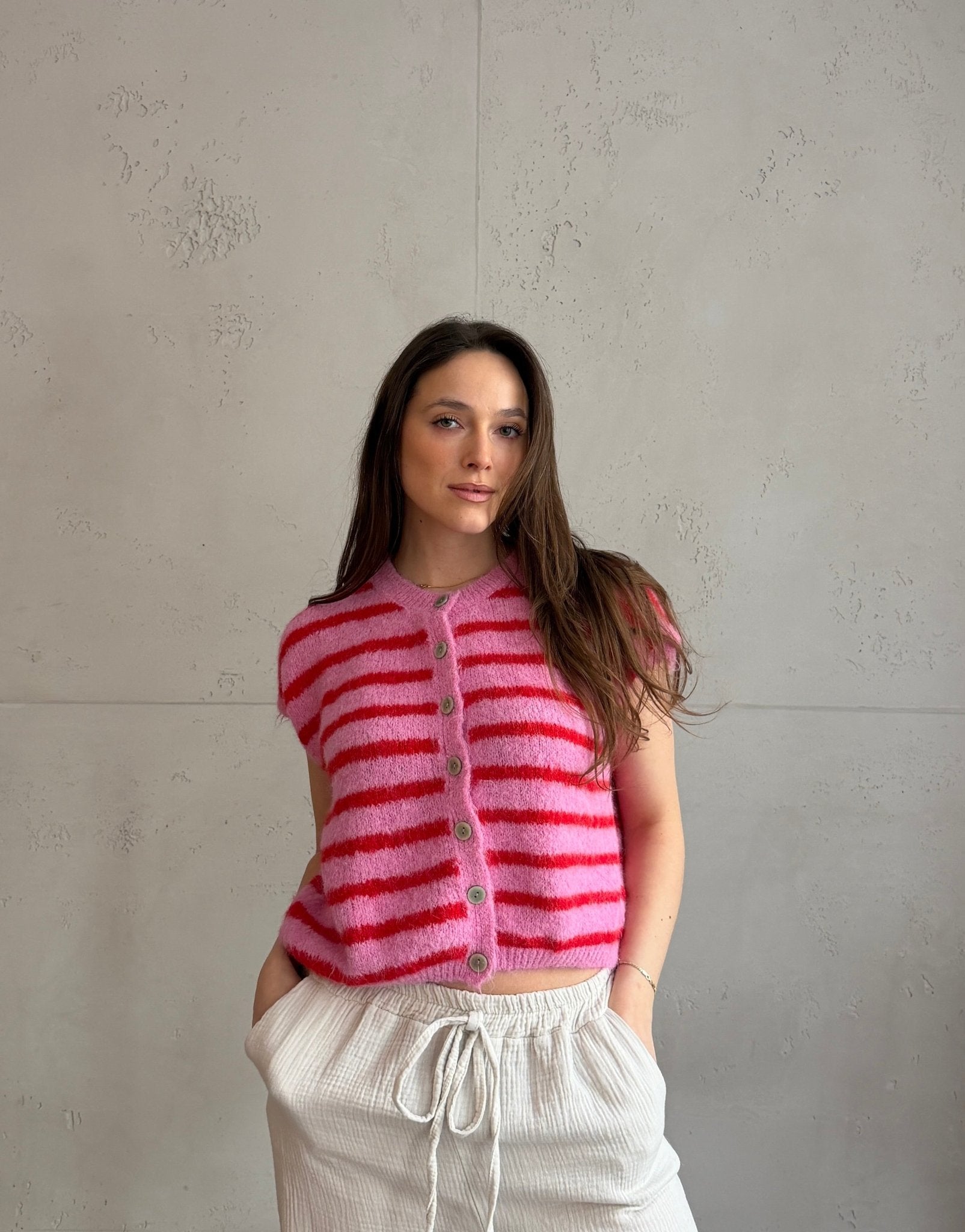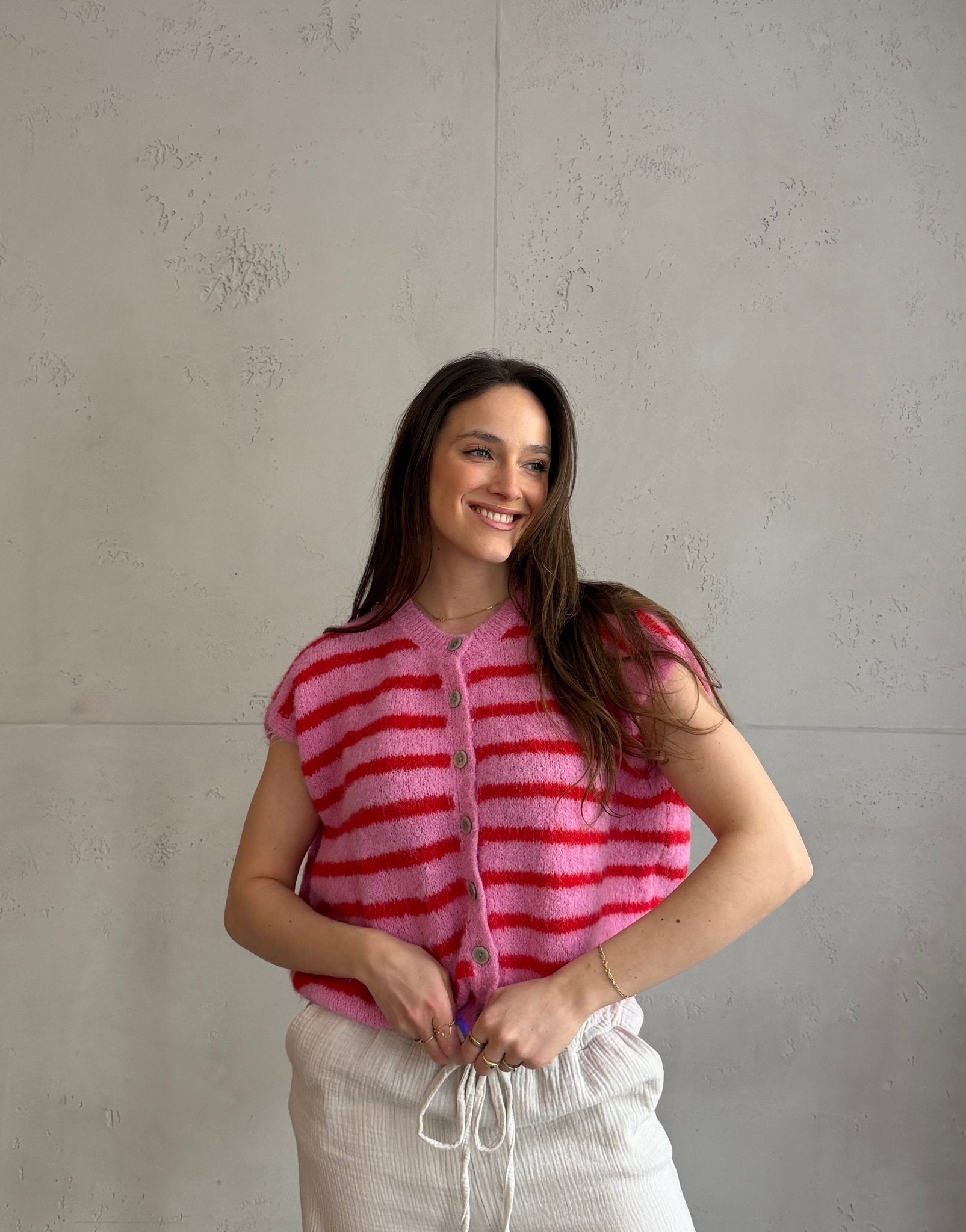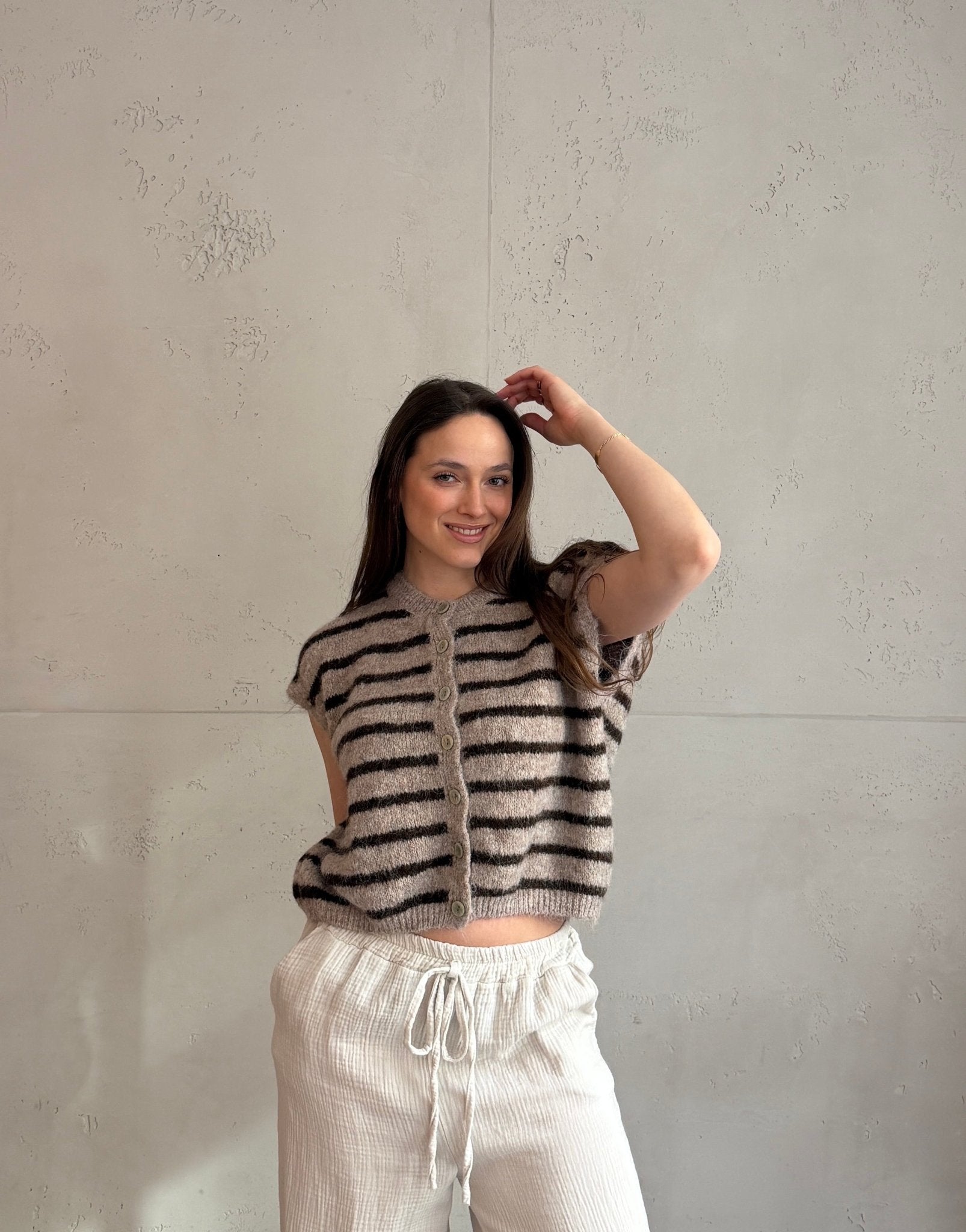 Gestreifter Pullunder mit Knöpfen & Übergeschnittener Schulter