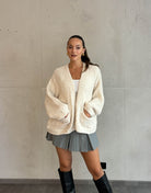 Die Boucle Strickjacke ist der ideale Begleiter für gemütliche Tage und stylische Outfits! Mit ihrem kuscheligen Material und den praktischen Seitentaschen wird sie schnell zum unverzichtbaren Must-Have in deiner Garderobe.